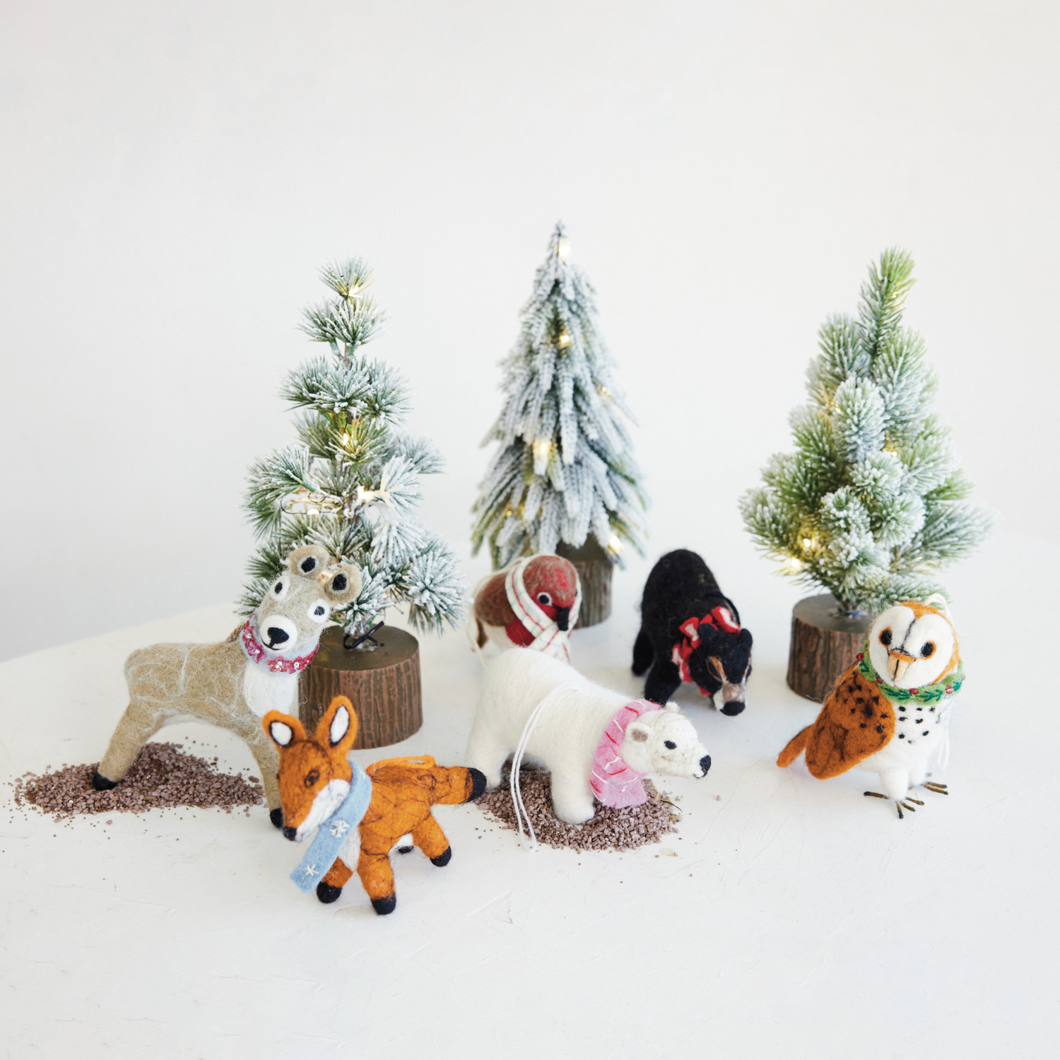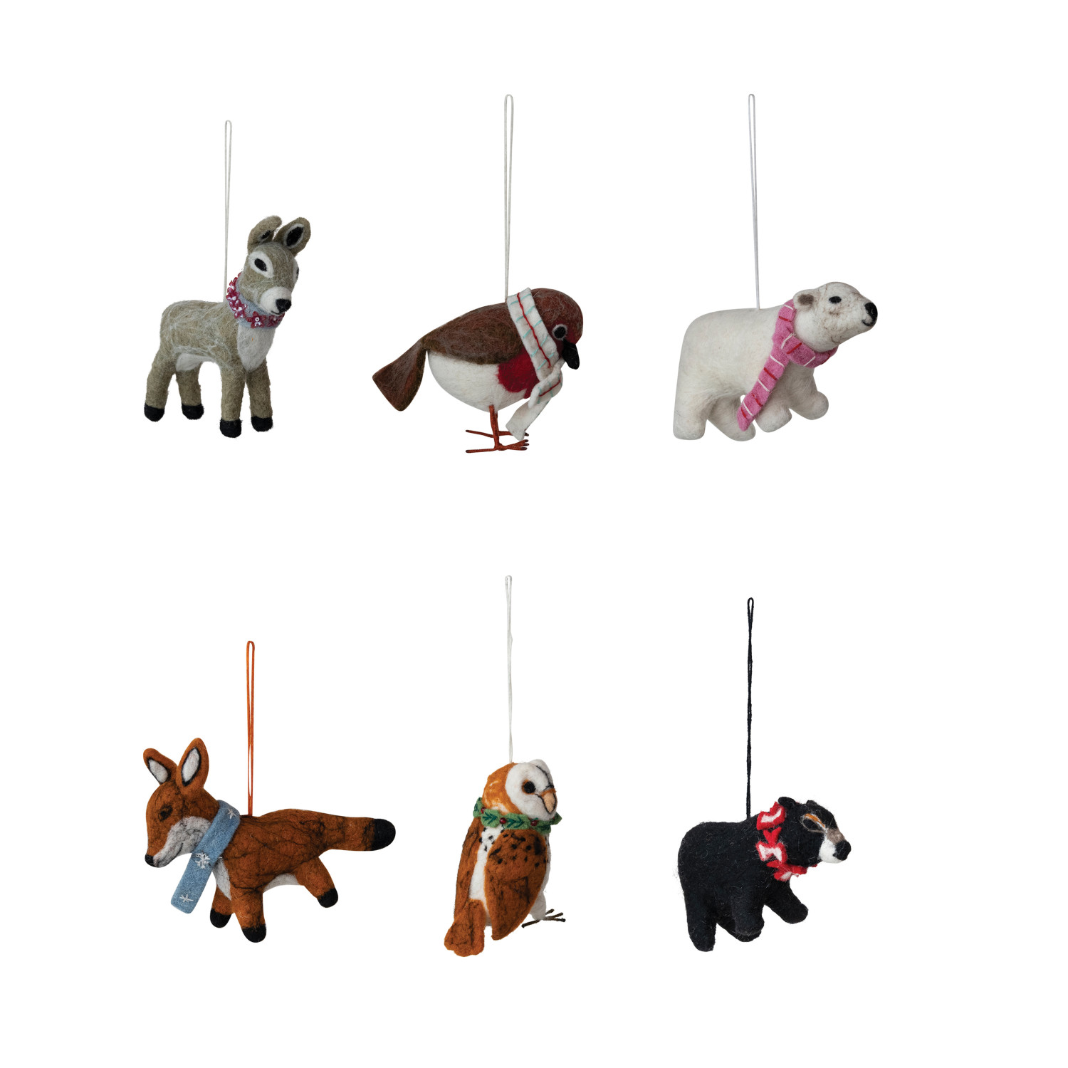 Catalog Name: 3"H - 4-3/4"H Handmade Wool Felt Animal Ornament w/ Scarf, Embroidery & Sequins, Multi Color, 6 Styles ©