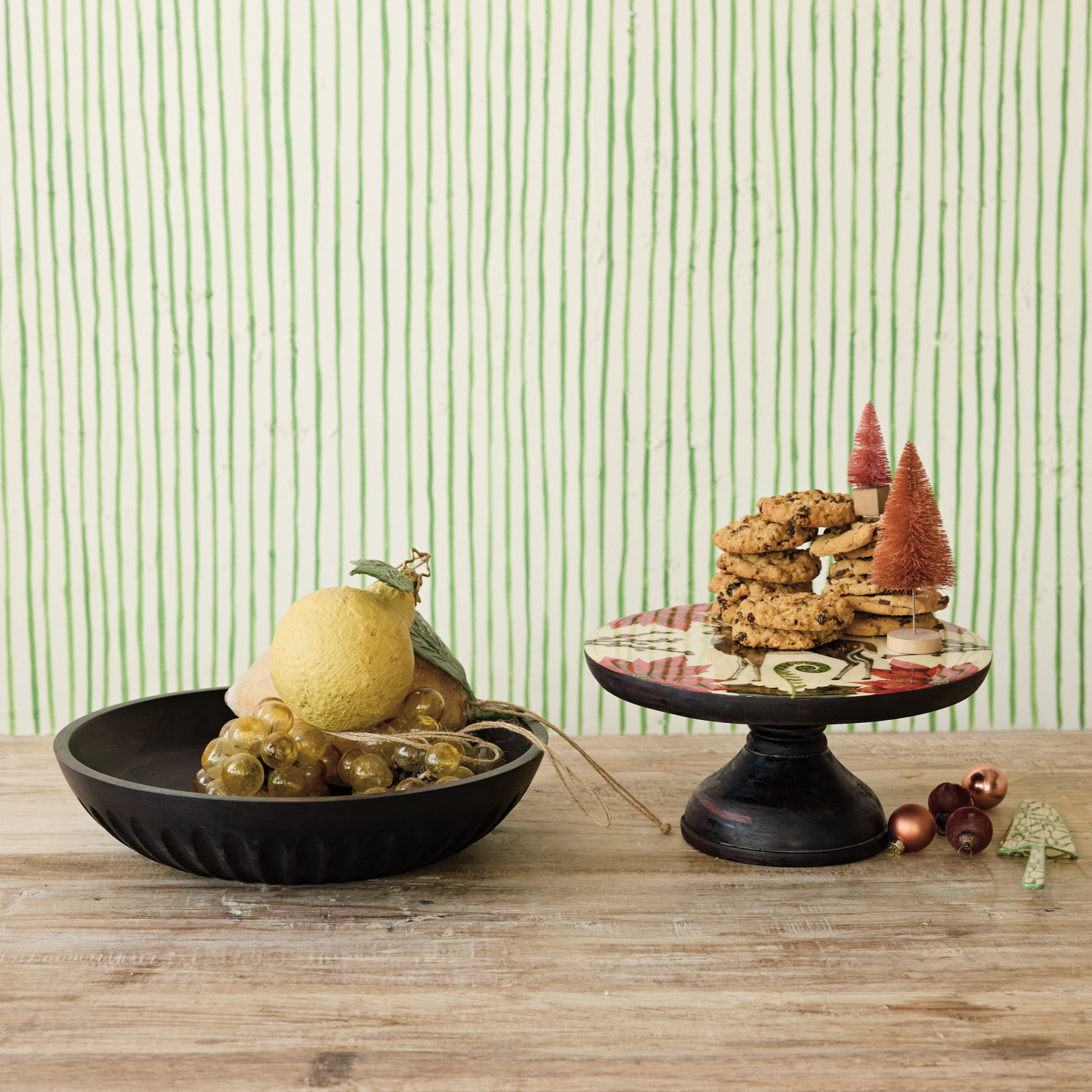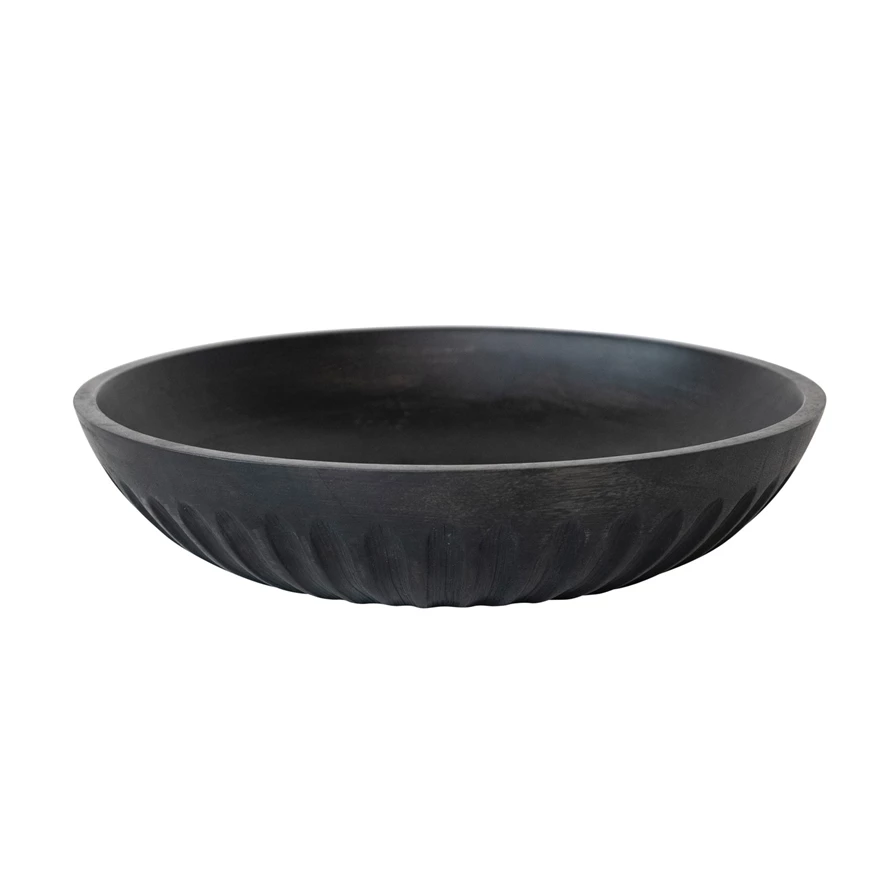 Catalog Name: 14" Round x 3"H Carved Mango Wood Bowl, Espresso Finish