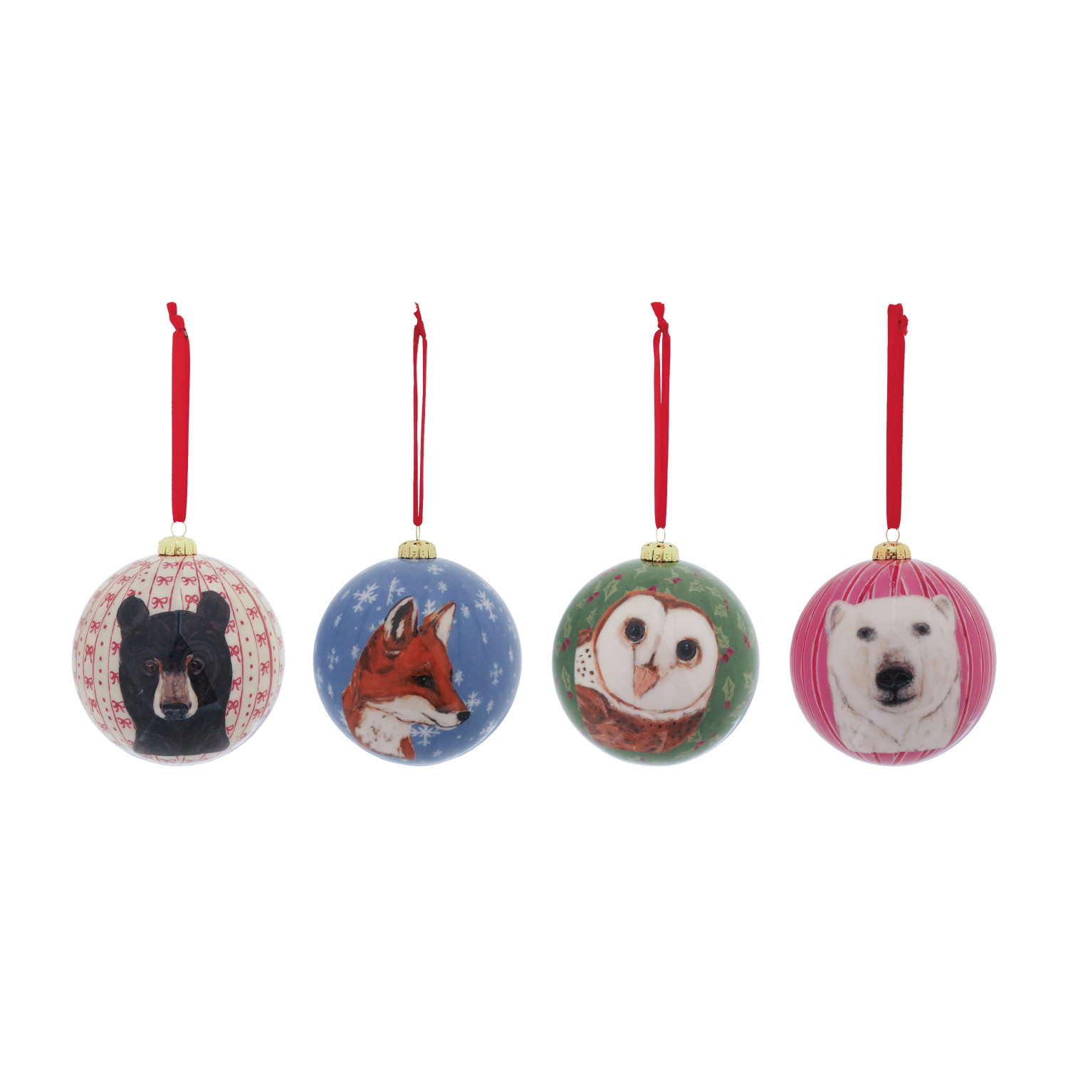 Catalog Name: 4" Round Handmade Decoupage Ball Ornament w/ Holiday Pattern & Animal, Multi Color, 4 Styles ©
