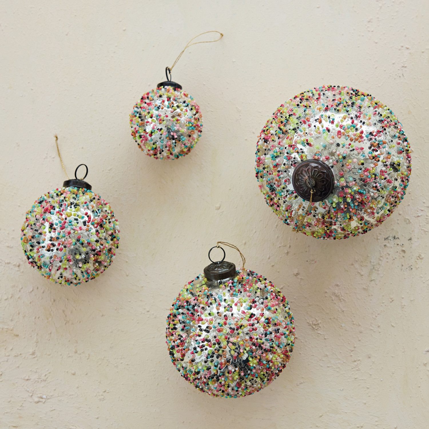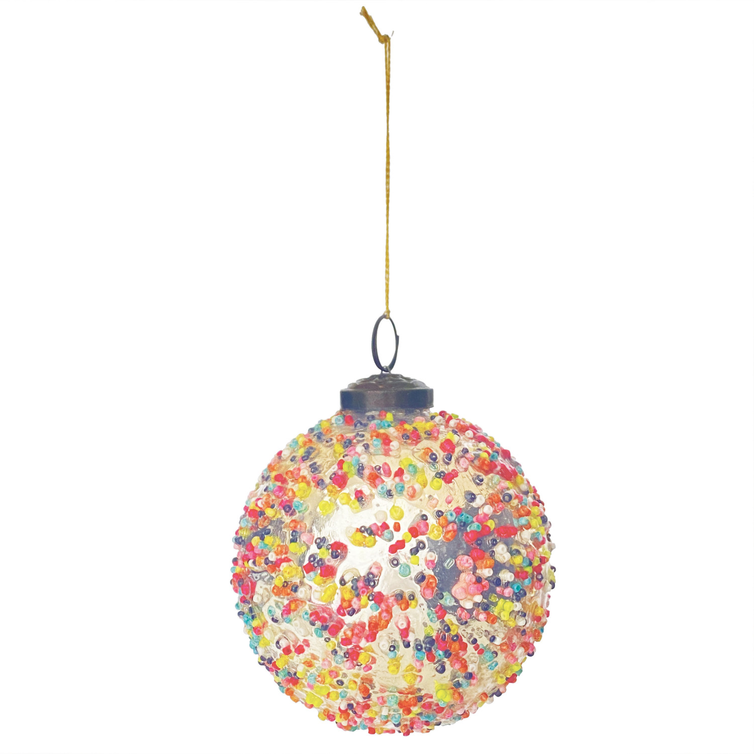Catalog Name: 4" Round Mercury Glass Ball Ornament w/ Confetti Beads, Multi Color
