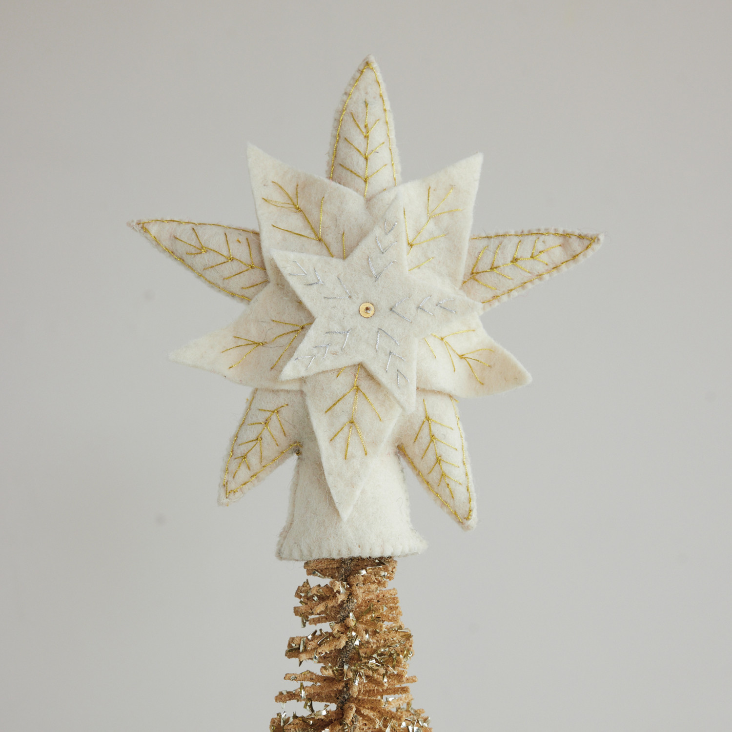 Handmade Wool Felt Star Tree Topper with Metallic Thread Embroidery