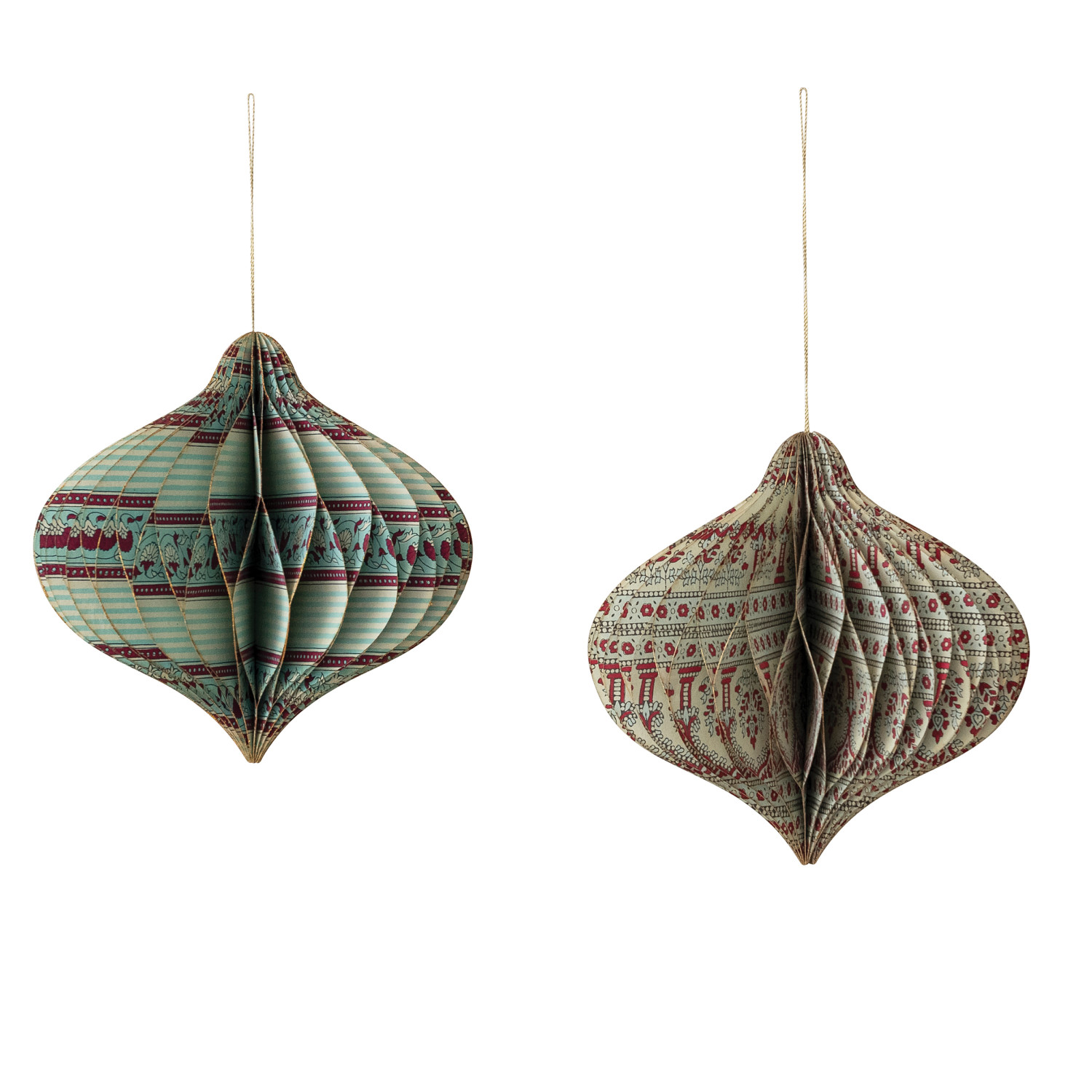Handmade Recycled Block Printed Paper Folding Honeycomb Finial Ornament, 2 Styles
