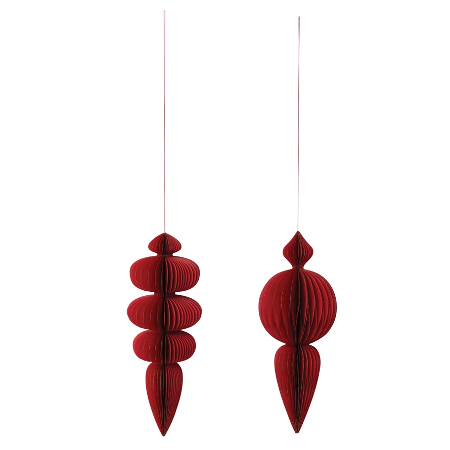 Catalog Name: 10" Round x 26"H Oversized Handmade Recycled Paper Folding Honeycomb Finial Ornament w/ Gold Glitter Edges, Red, 2 Styles
