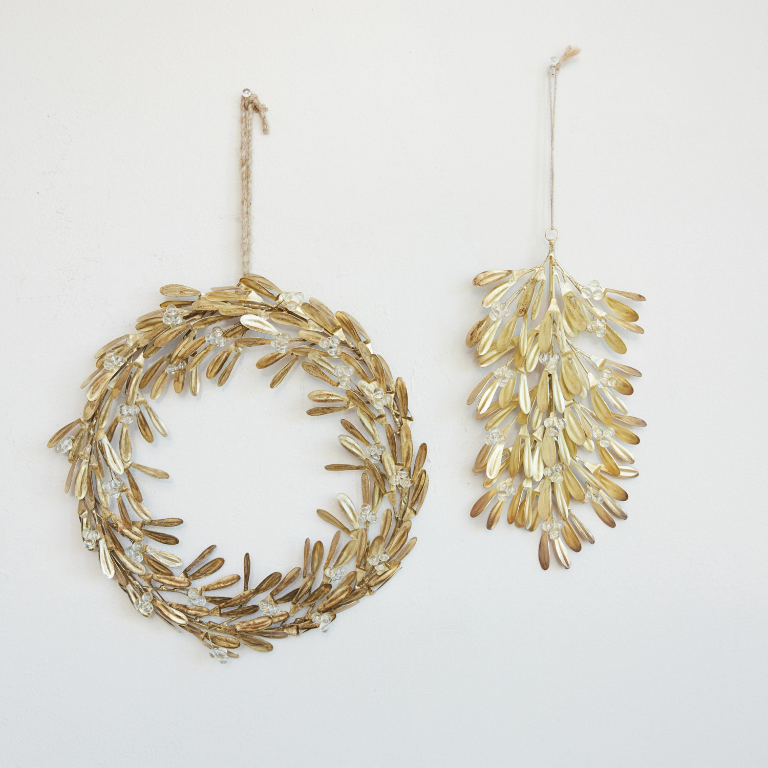 Catalog Name: 10-1/4"H Handmade Metal & Acrylic Bead Mistletoe Bunch Ornament, Antique Brass Finish