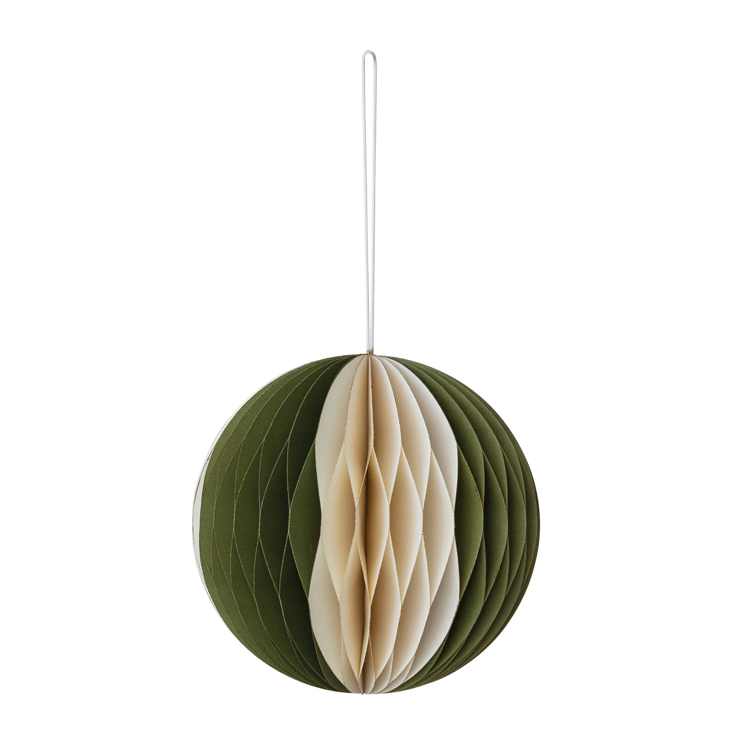 Catalog Name: 5" Round Handmade Recycled Paper Folding Honeycomb Ball Ornament w/ Gold Glitter Edges, Green & Ivory Color