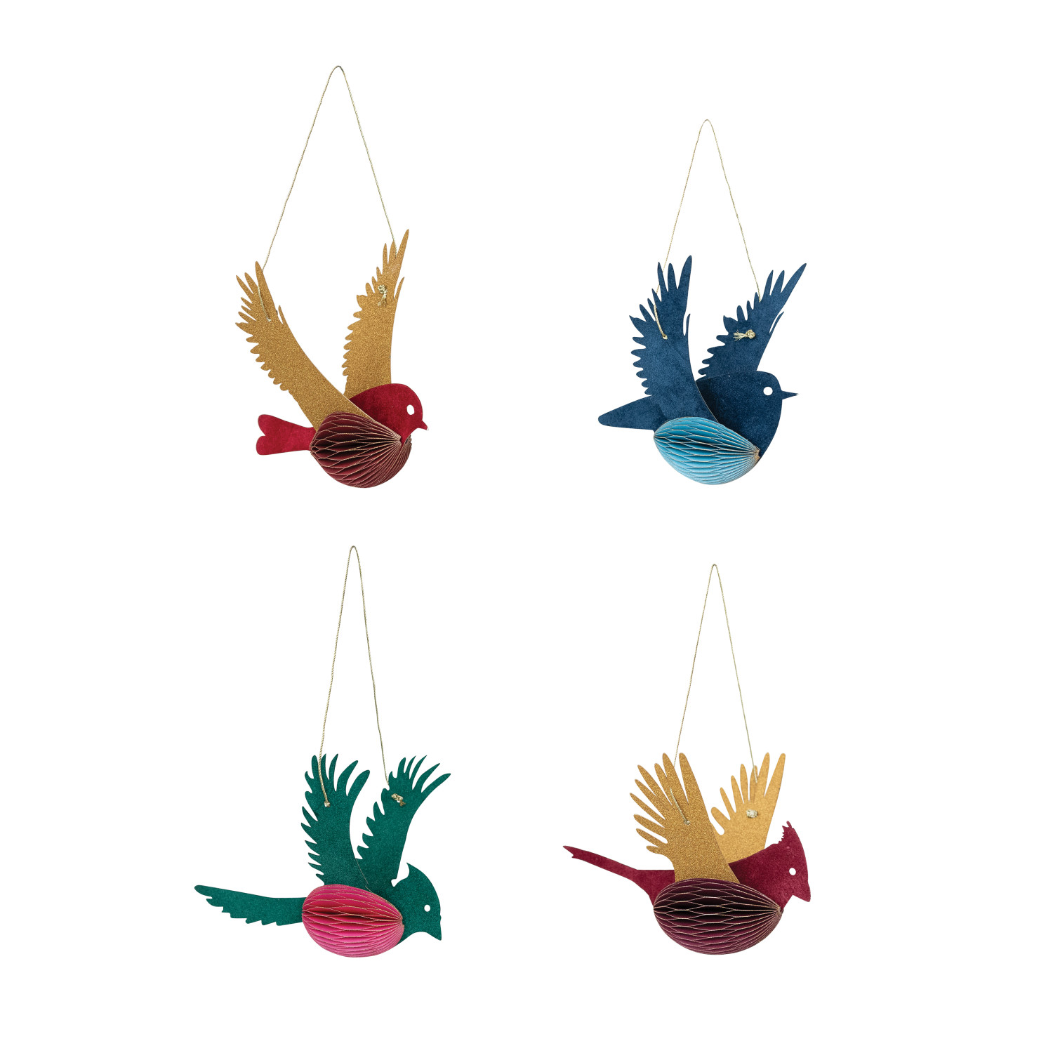 Handmade Recycled Paper Folding Honeycomb Bird Ornament with Glitter, 4 Styles