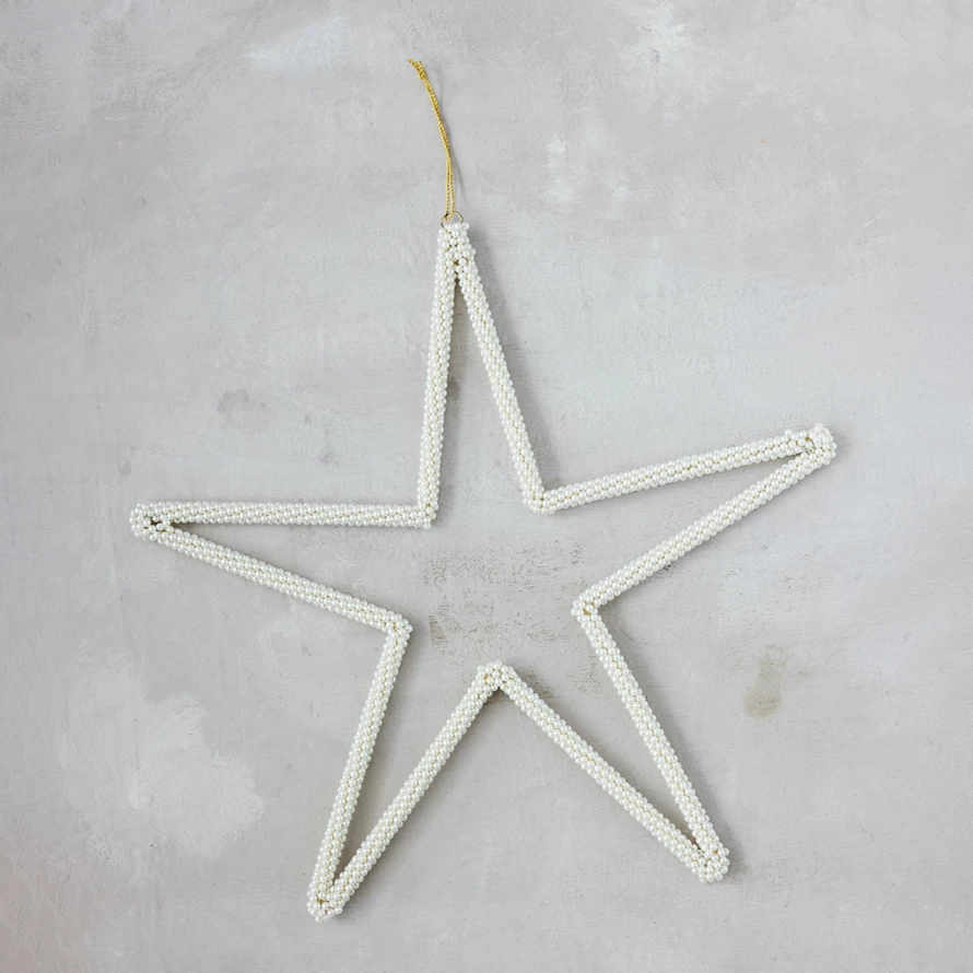 Oversized Metal & Faux Pearl Beaded Star Ornament