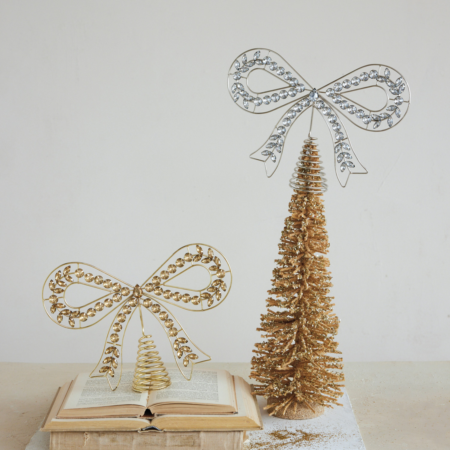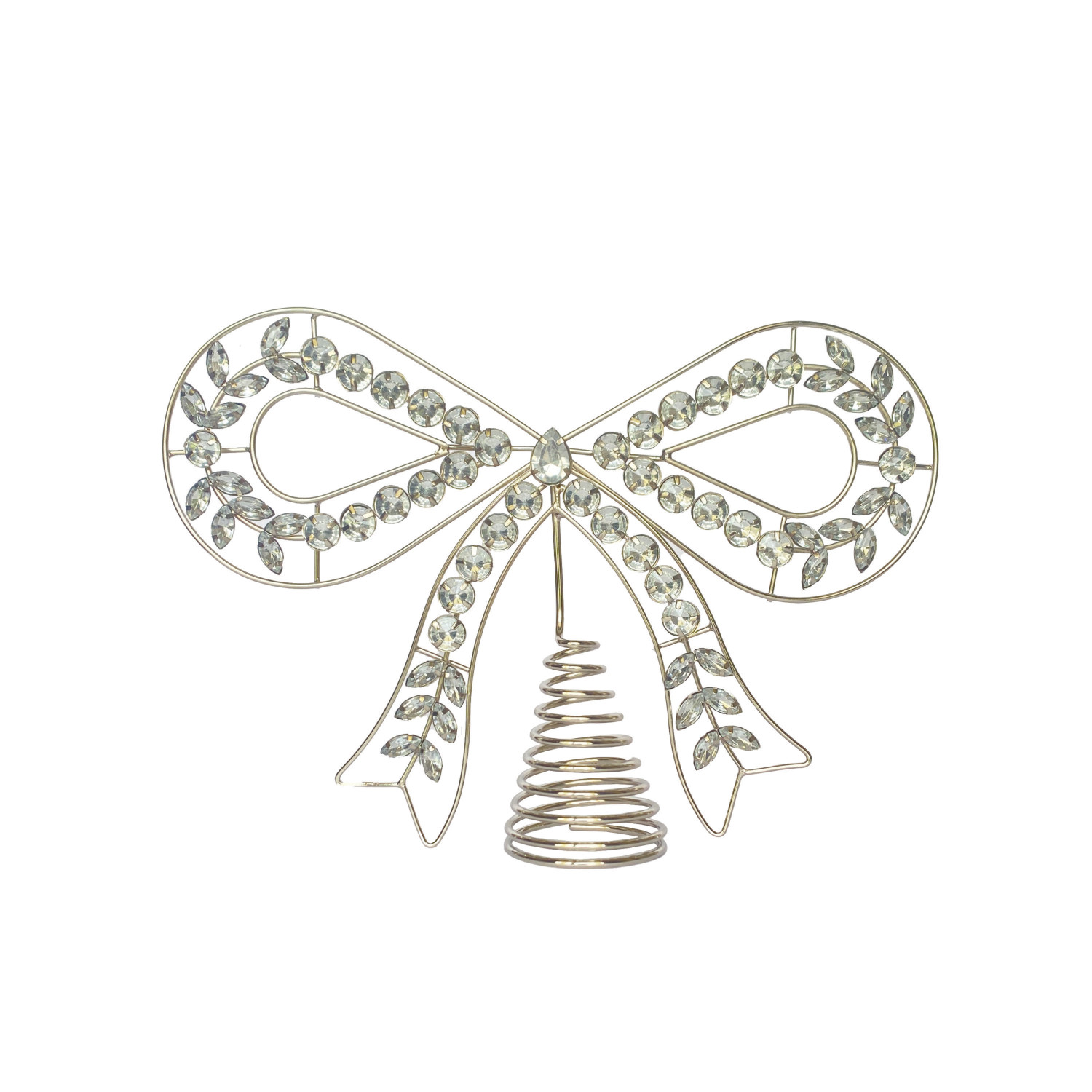 Metal & Acrylic Jewel Bow Shaped Tree Topper, Silver Finish