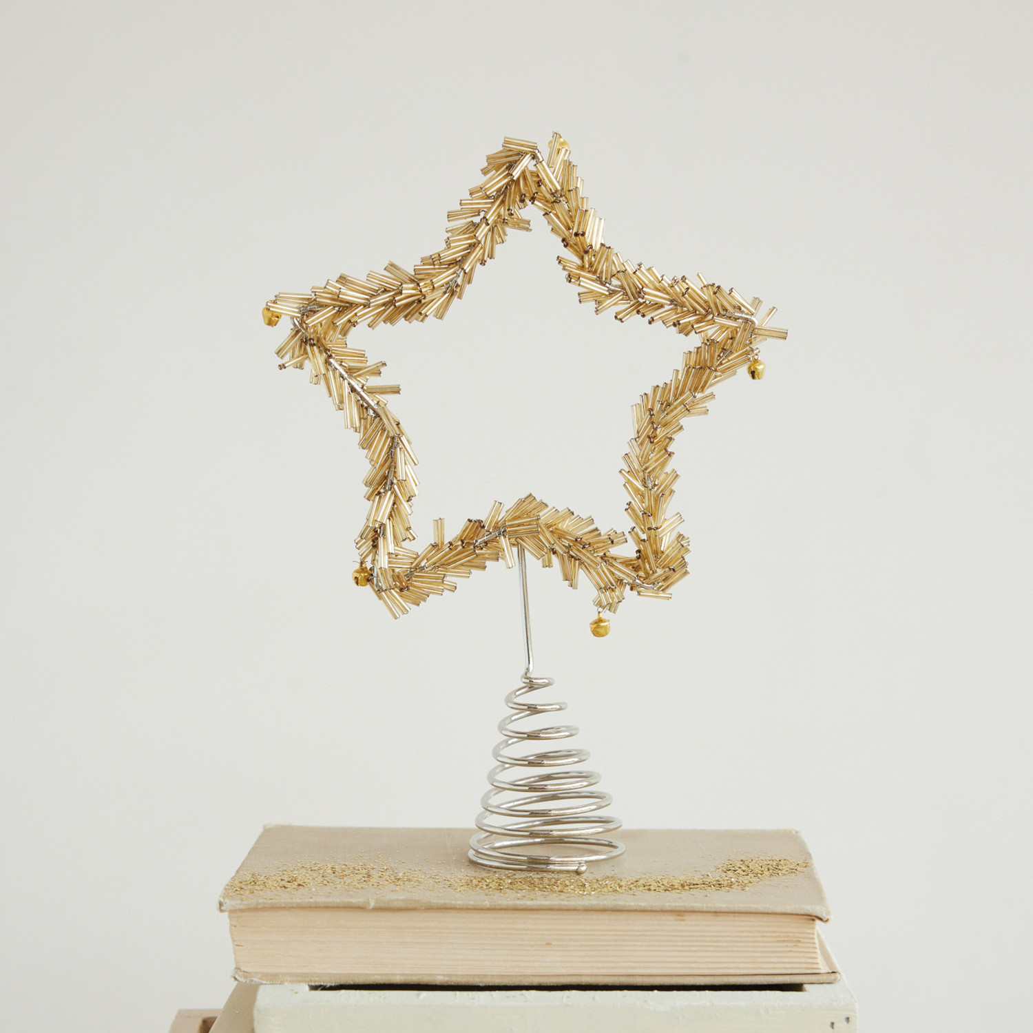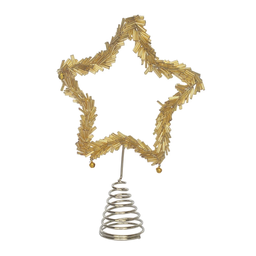 Metal & Glass Beaded Star Tree Topper with Jingle Bells, Gold & Silver Finish