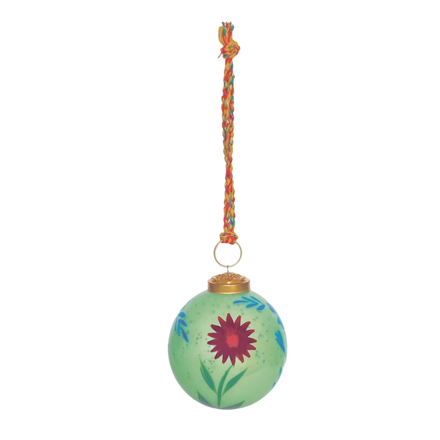 Hand-Painted Mercury Glass Ball Ornament with Flowers