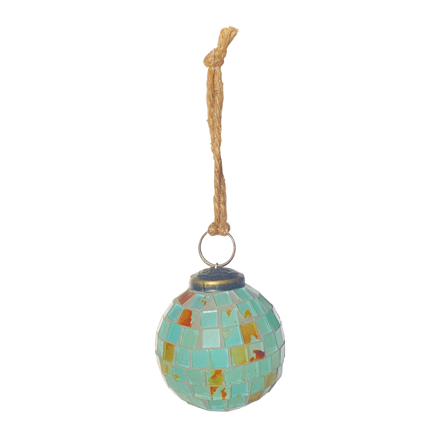 Glass Marbled Mosaic Ball Ornament, Blue & Copper Finish