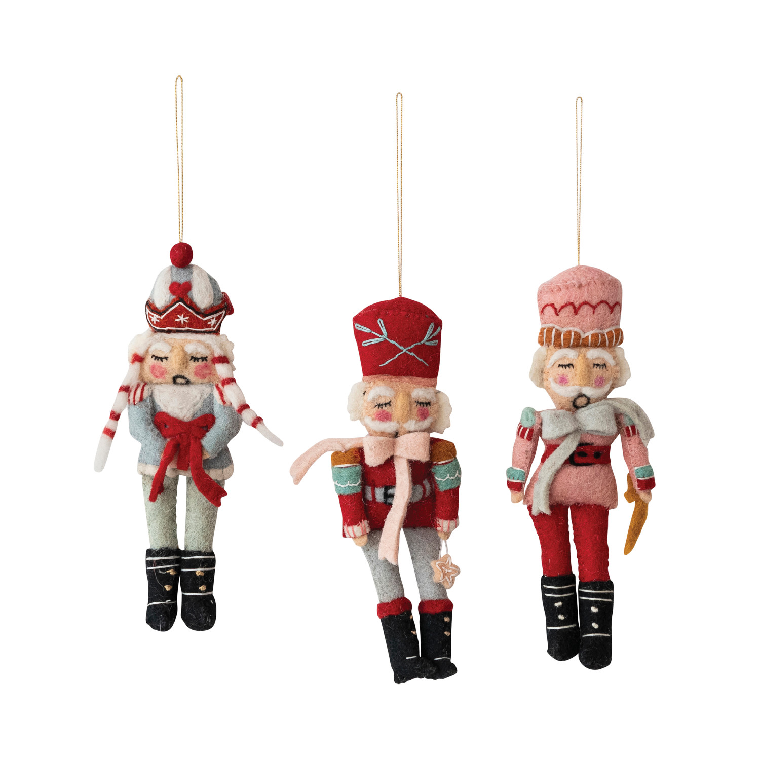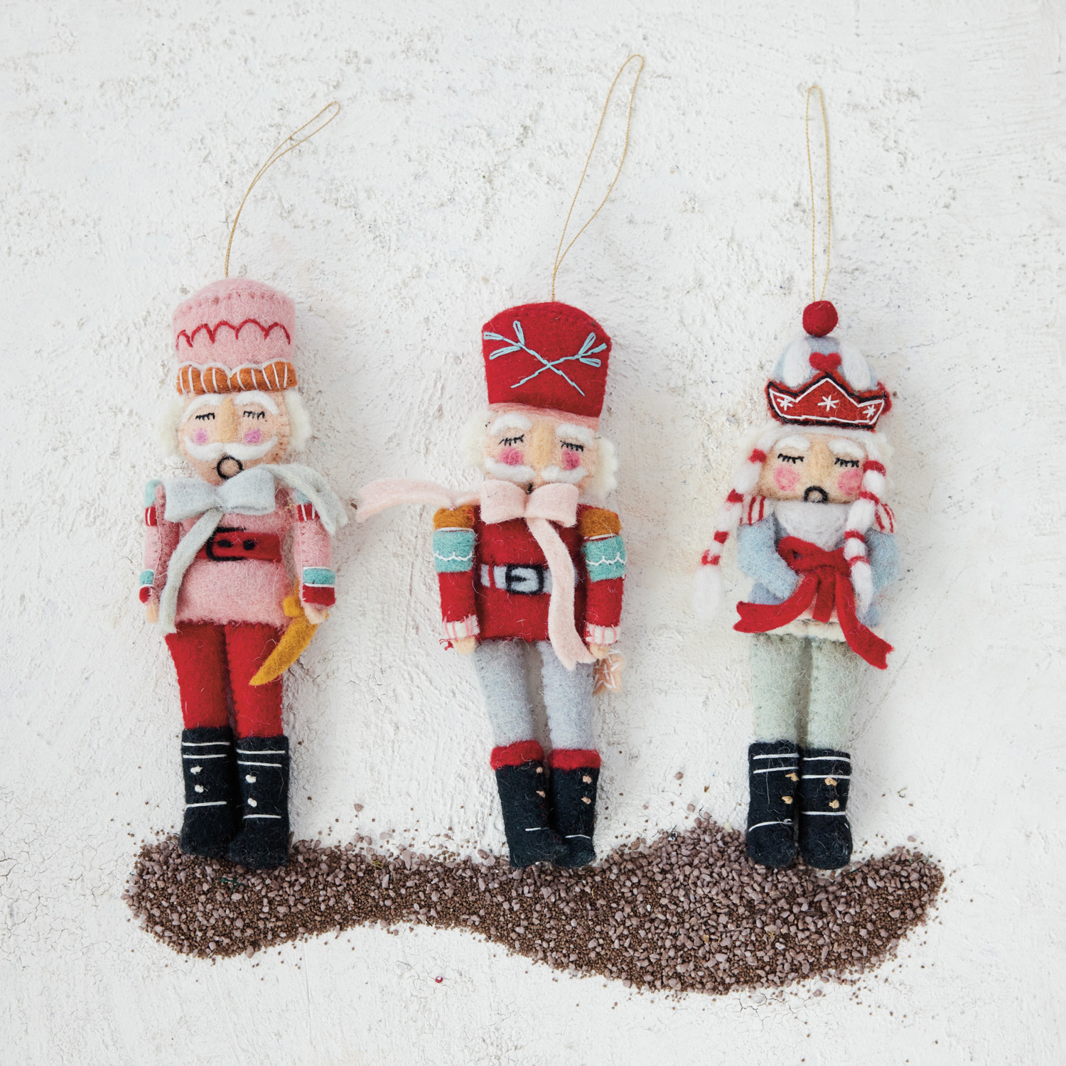 Catalog Name: Approximately 8-1/4"H Handmade Wool Felt Nutcracker Ornament w/ Embroidery & Beads, Multi Color, 3 Styles ©