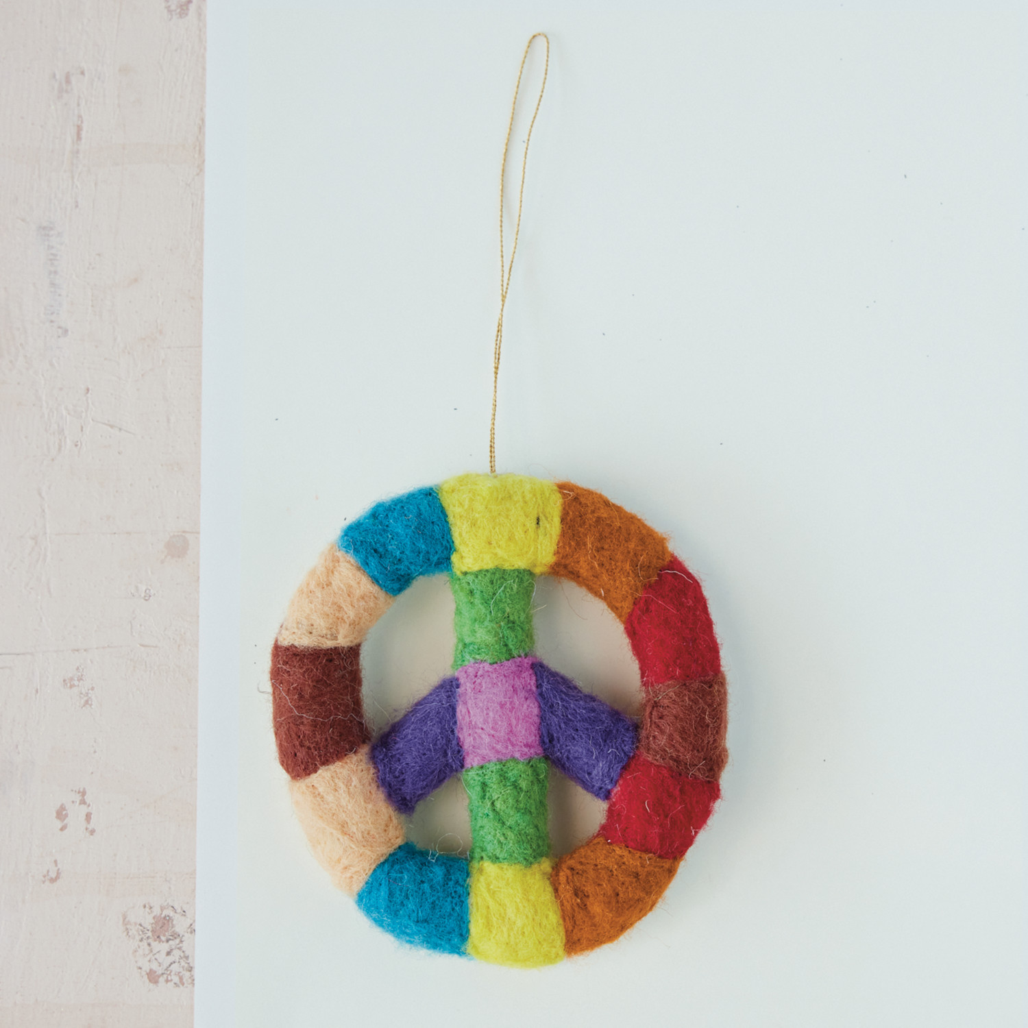 Handmade Wool Felt Striped Peace Sign Ornament