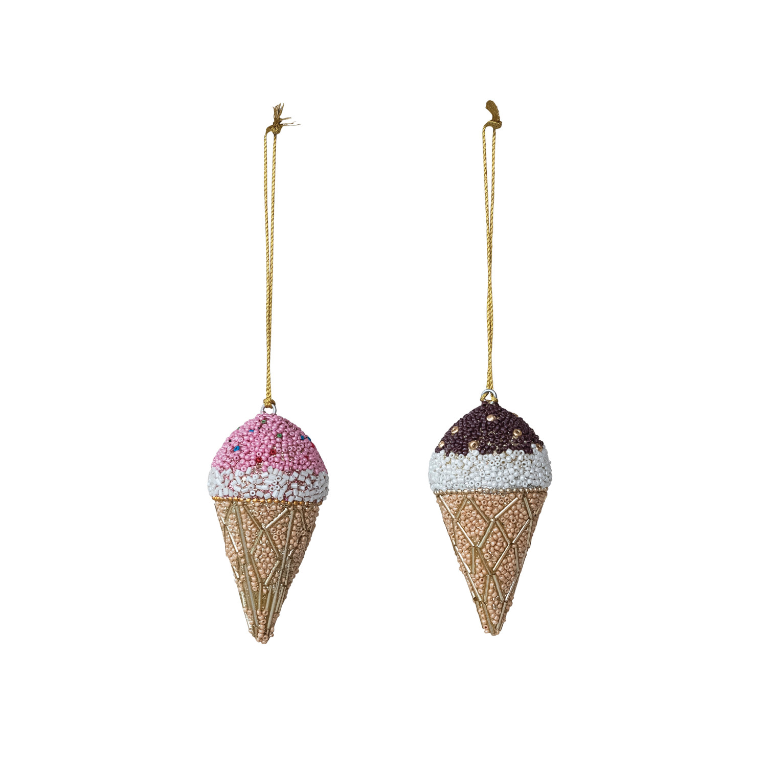 Handmade Plastic & Glass Beaded Ice Cream Cone Ornament, 2 Styles