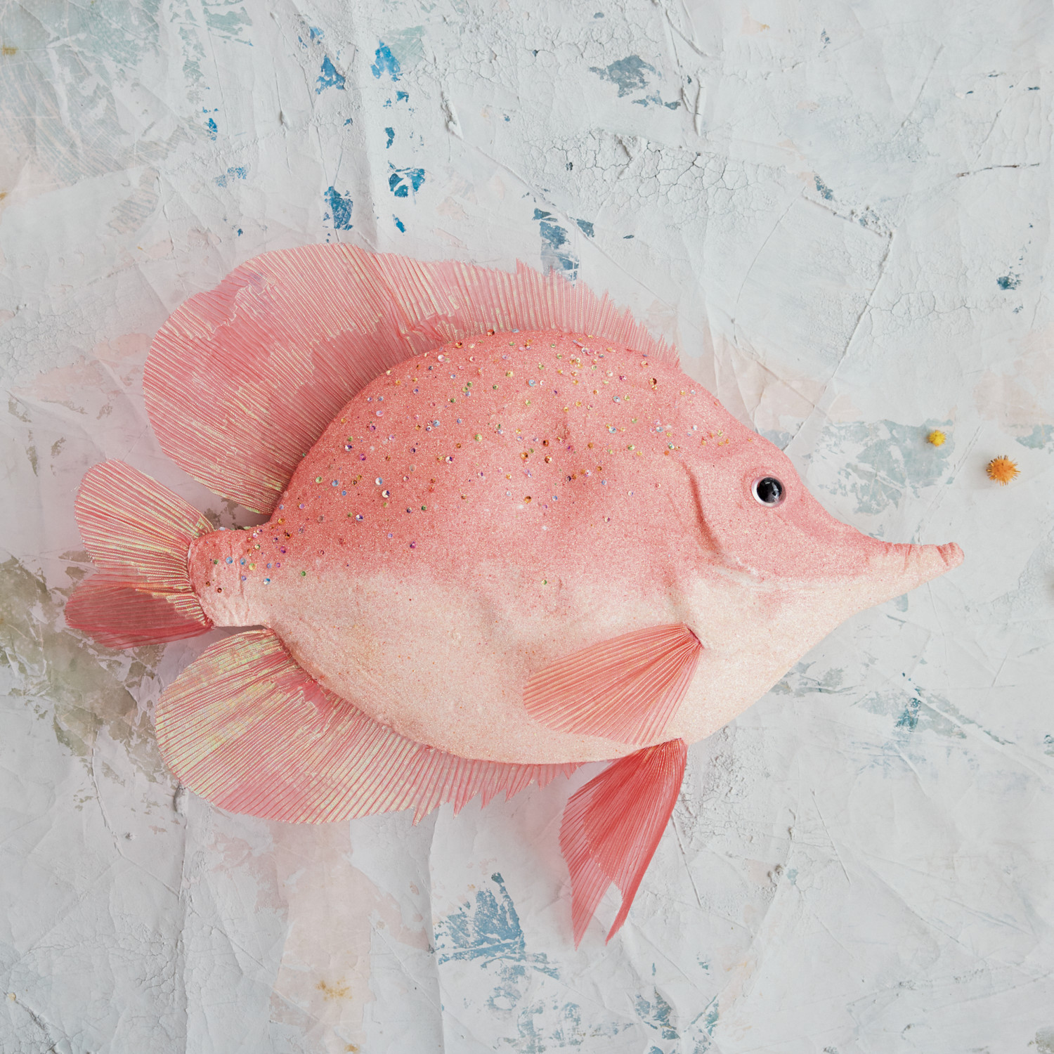 Oversized Foam Fish Ornament with Glitter, Sequins & Beads, Pink & White