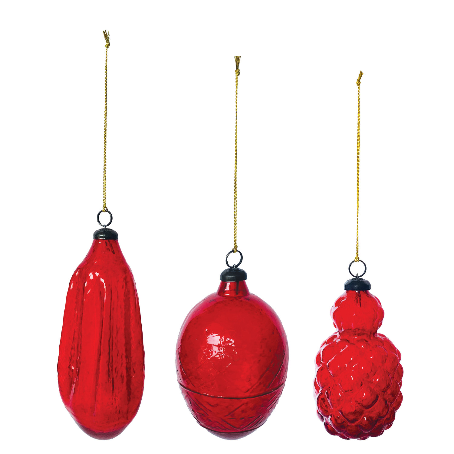 Hand-Blown Glass Ornament, Red, 3 Styles