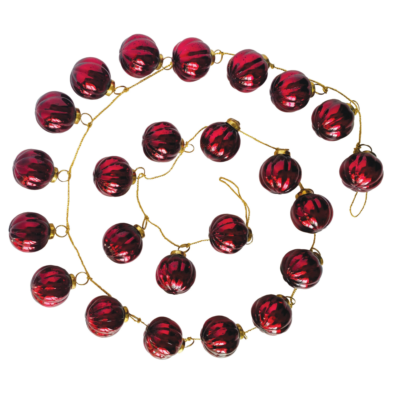 Catalog Name: 72"L x 2"H Embossed Recycled Mercury Glass Ball Ornament Garland w/ Gold Cord, Burgundy