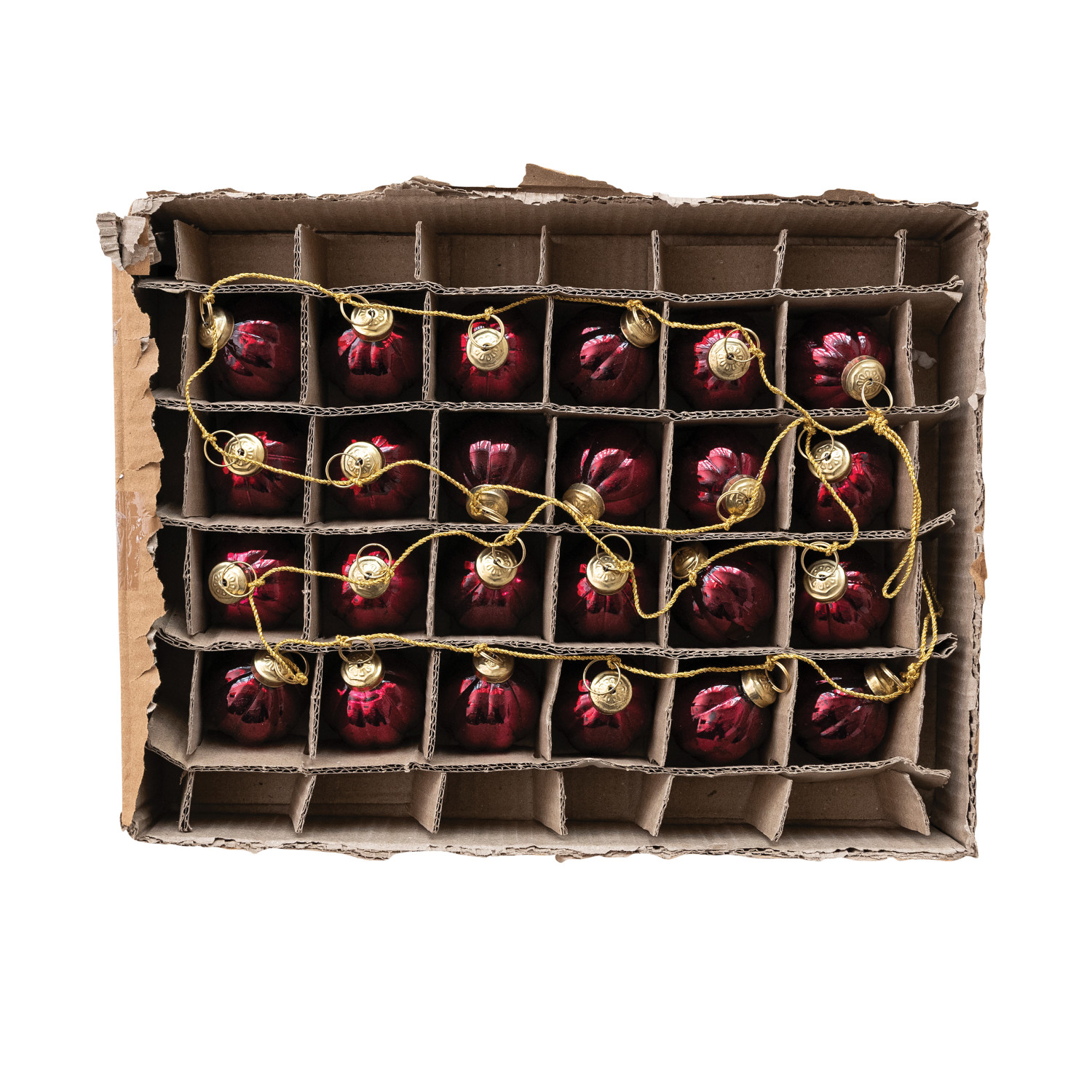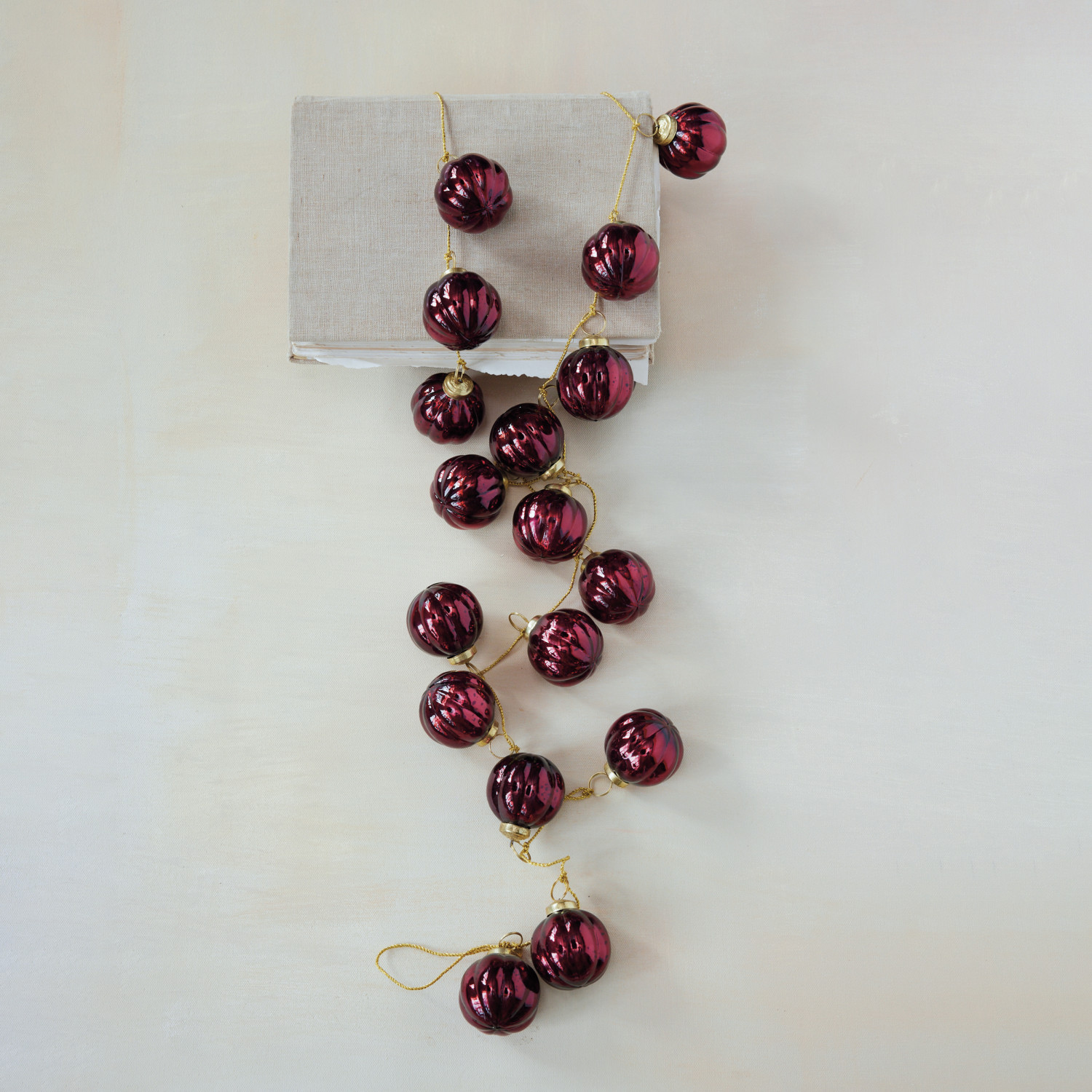 Embossed Recycled Mercury Glass Ball Ornament Garland with Gold Cord, Burgundy