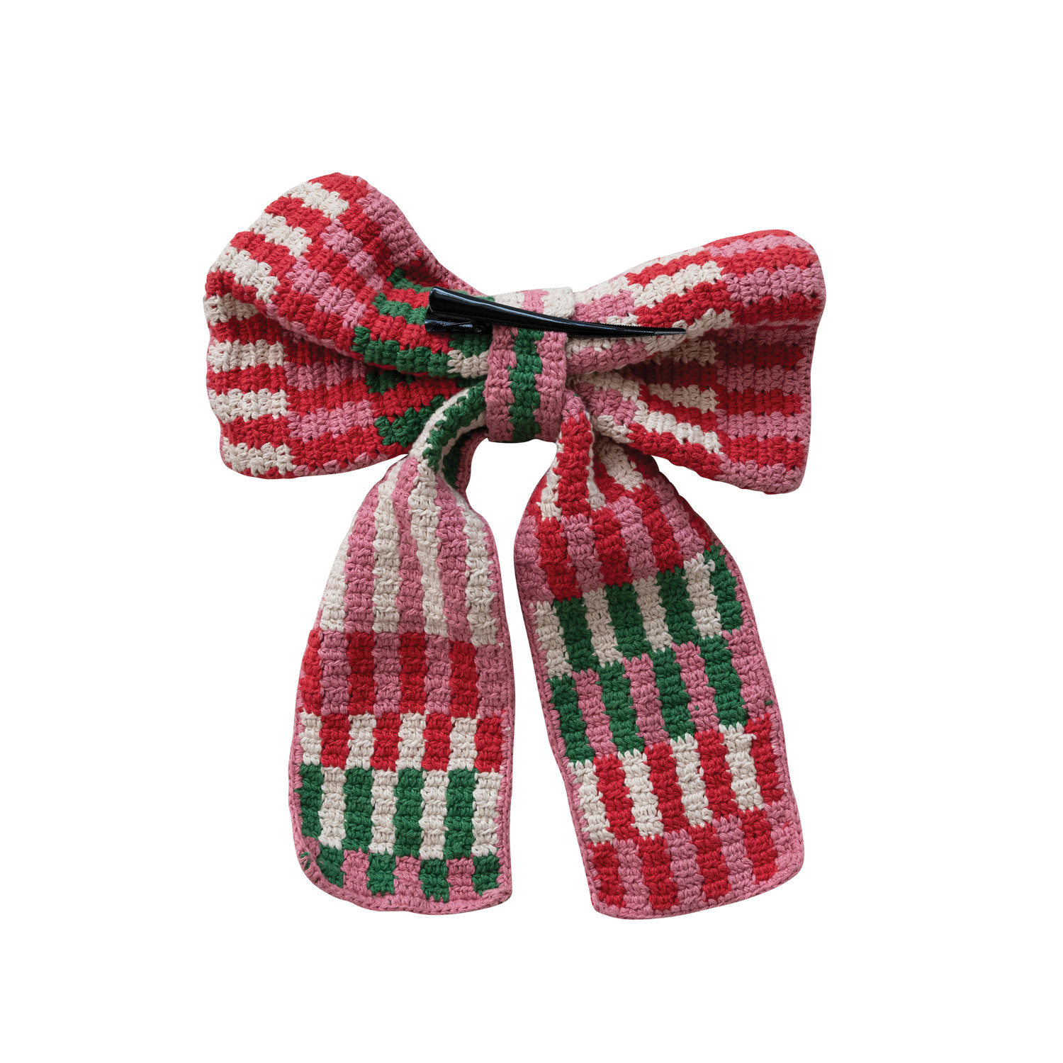 Catalog Name: 11"W x 15"H Cotton Crocheted Clip-on Bow w/ Pattern, Multi Color