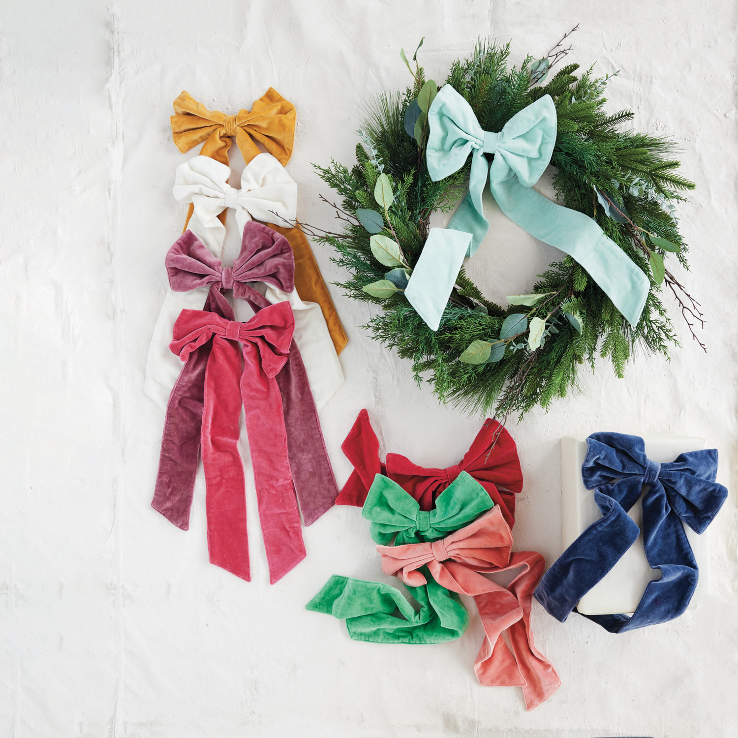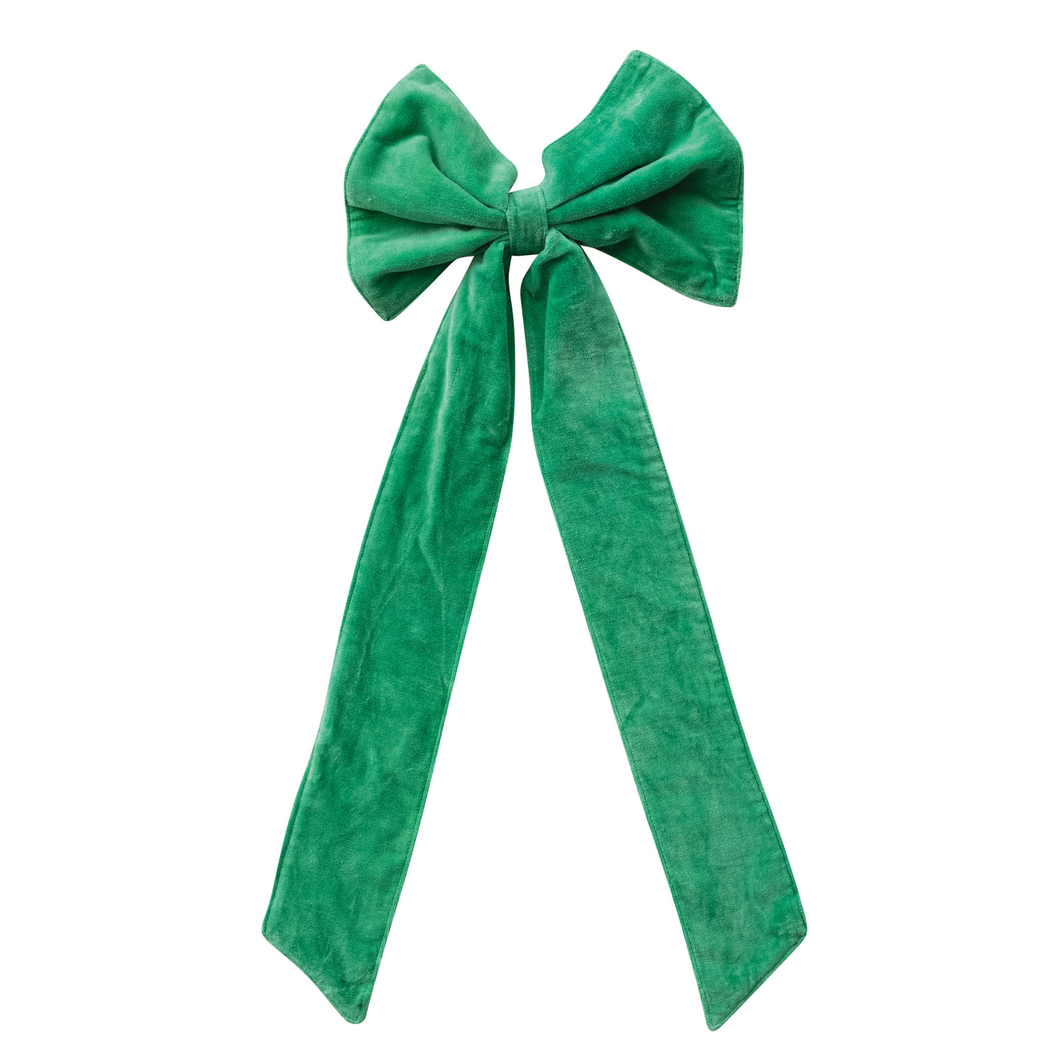 Catalog Name: 10"W x 21"H Cotton Velvet Clip-on Bow, Kelly Green
