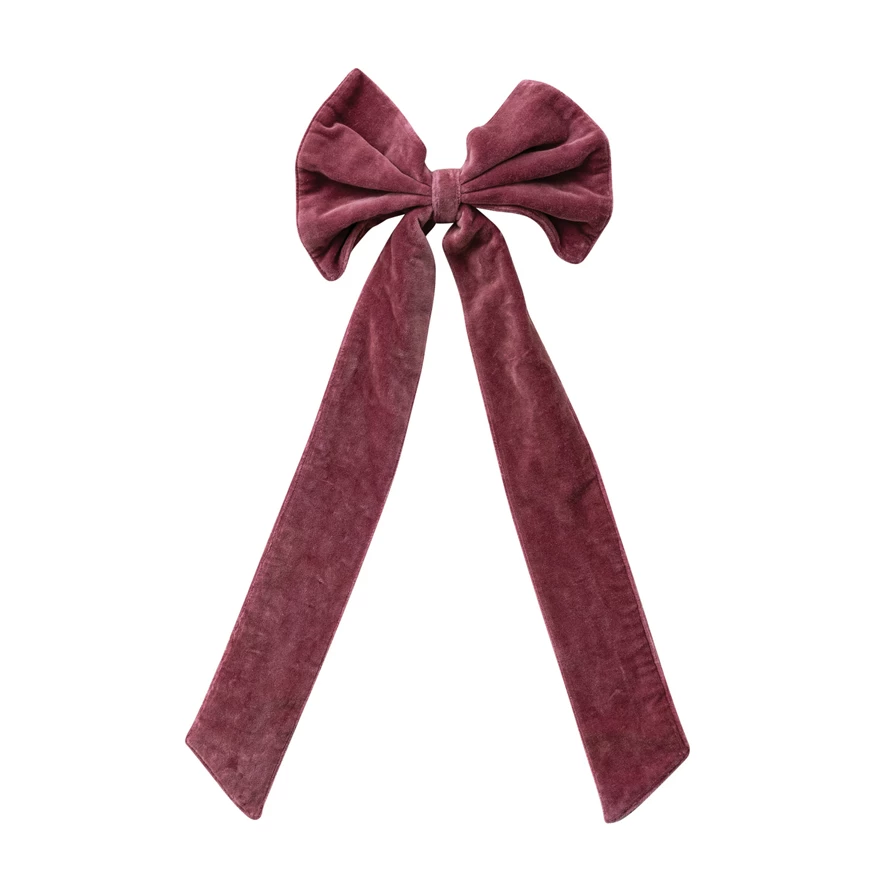 Cotton Velvet Clip-on Bow, Burgundy