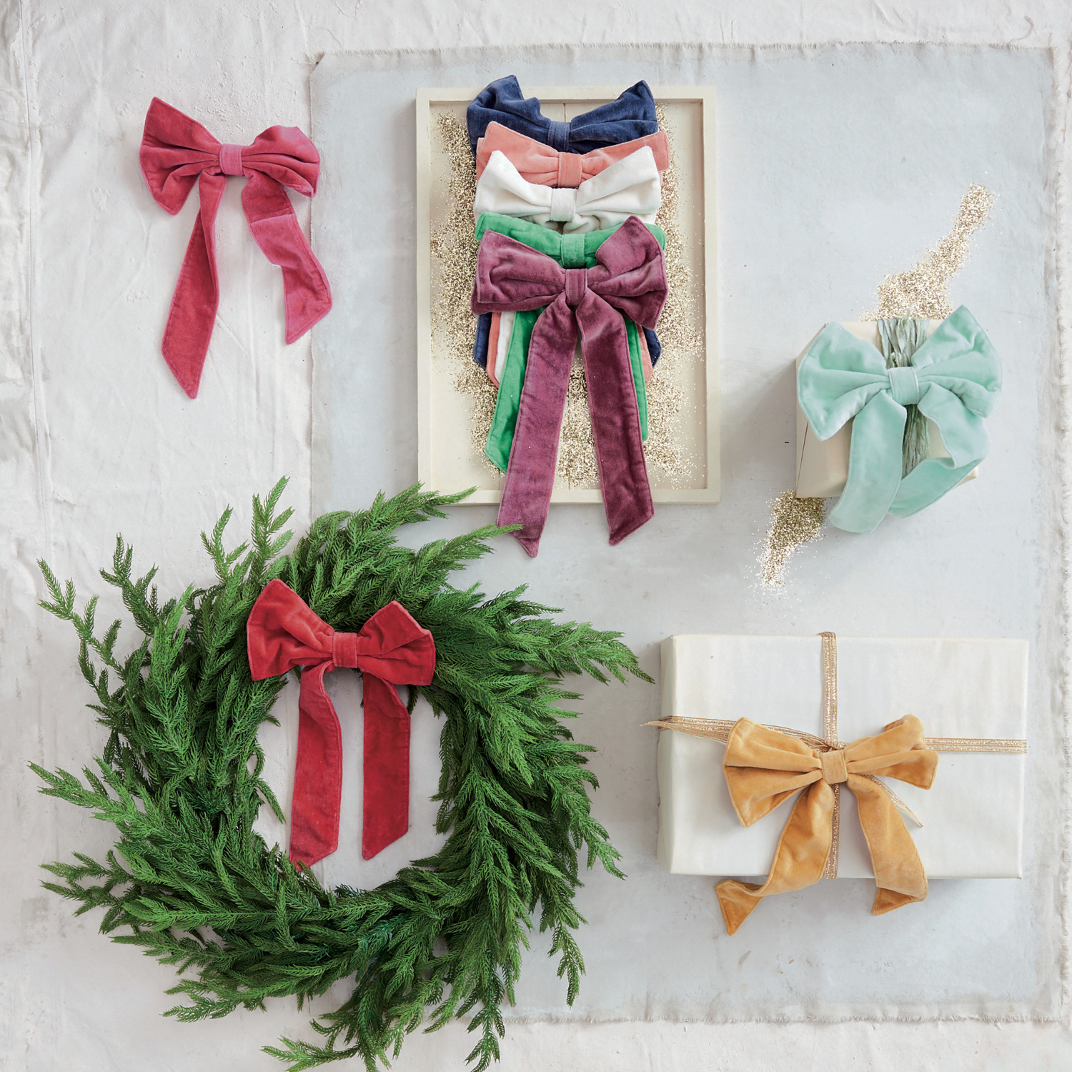 Catalog Name: 8"W x 13"H Cotton Velvet Clip-on Bow, Red