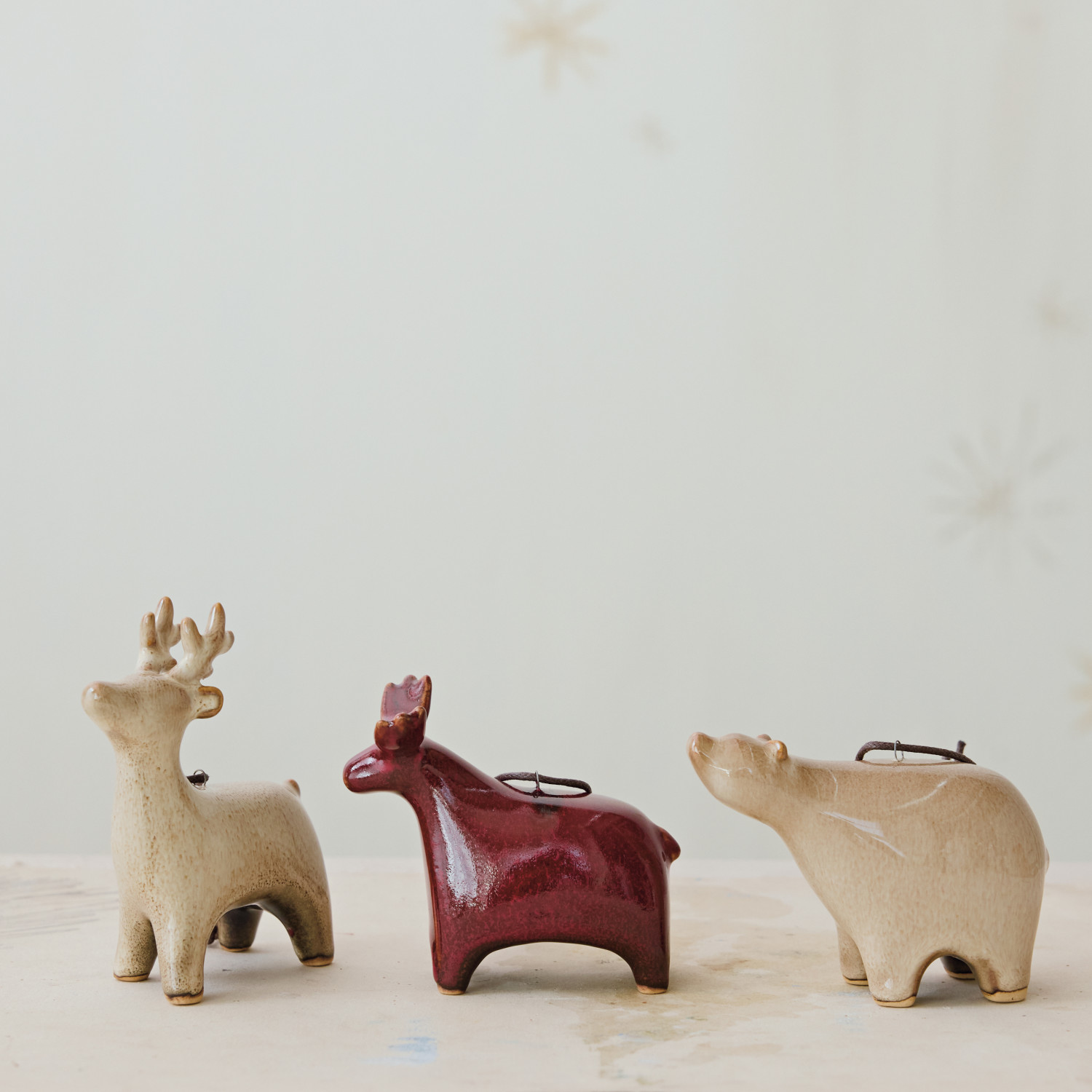 Stoneware Animal Ornament, 3 Styles (Each One Will Vary)
