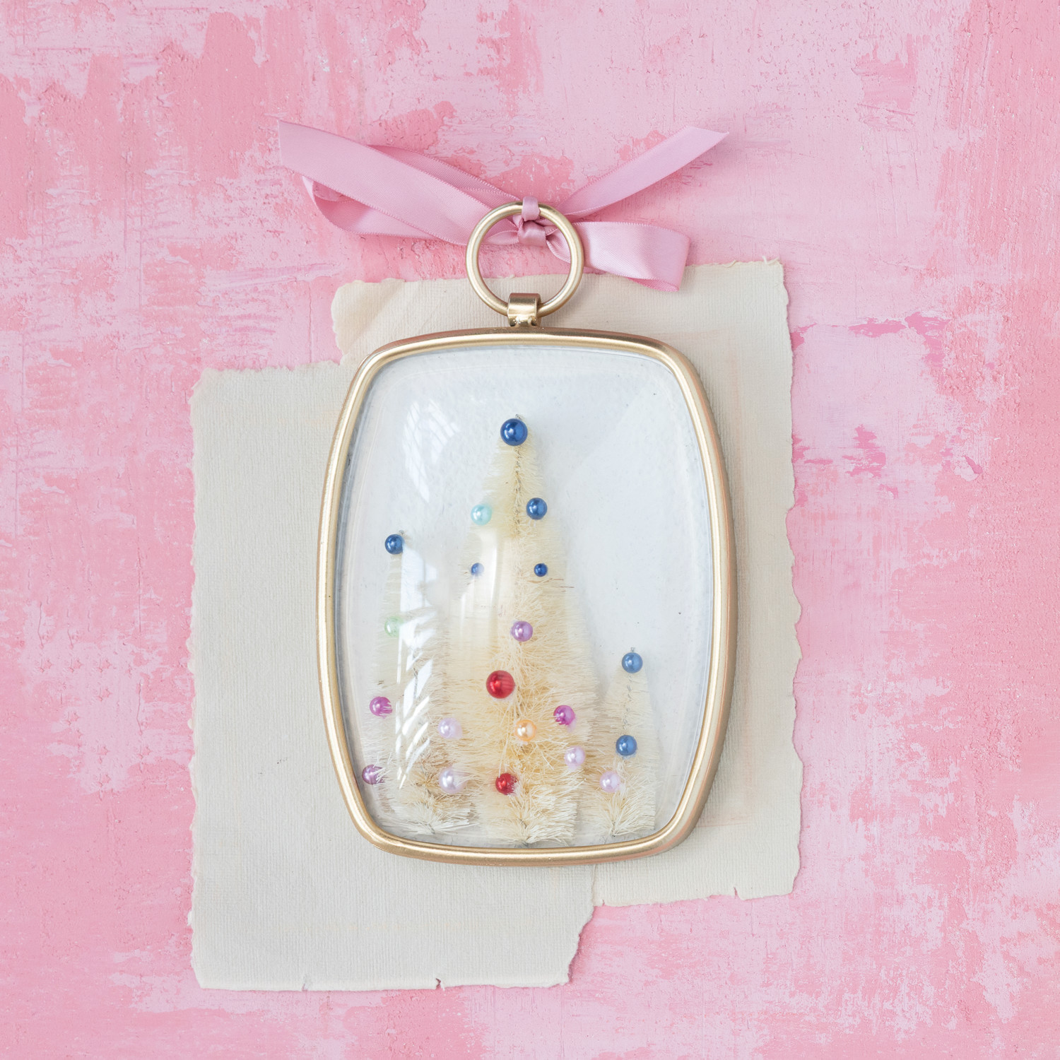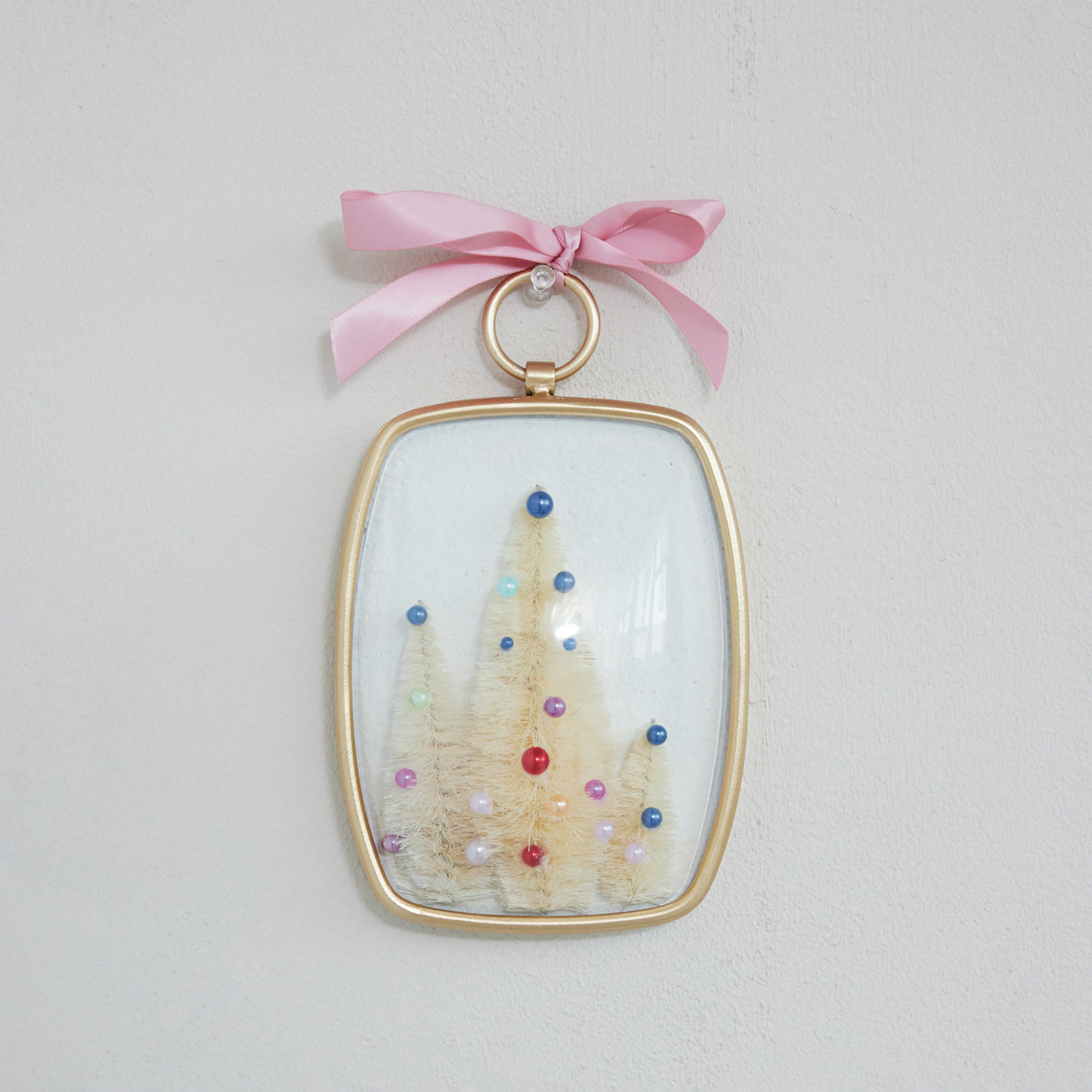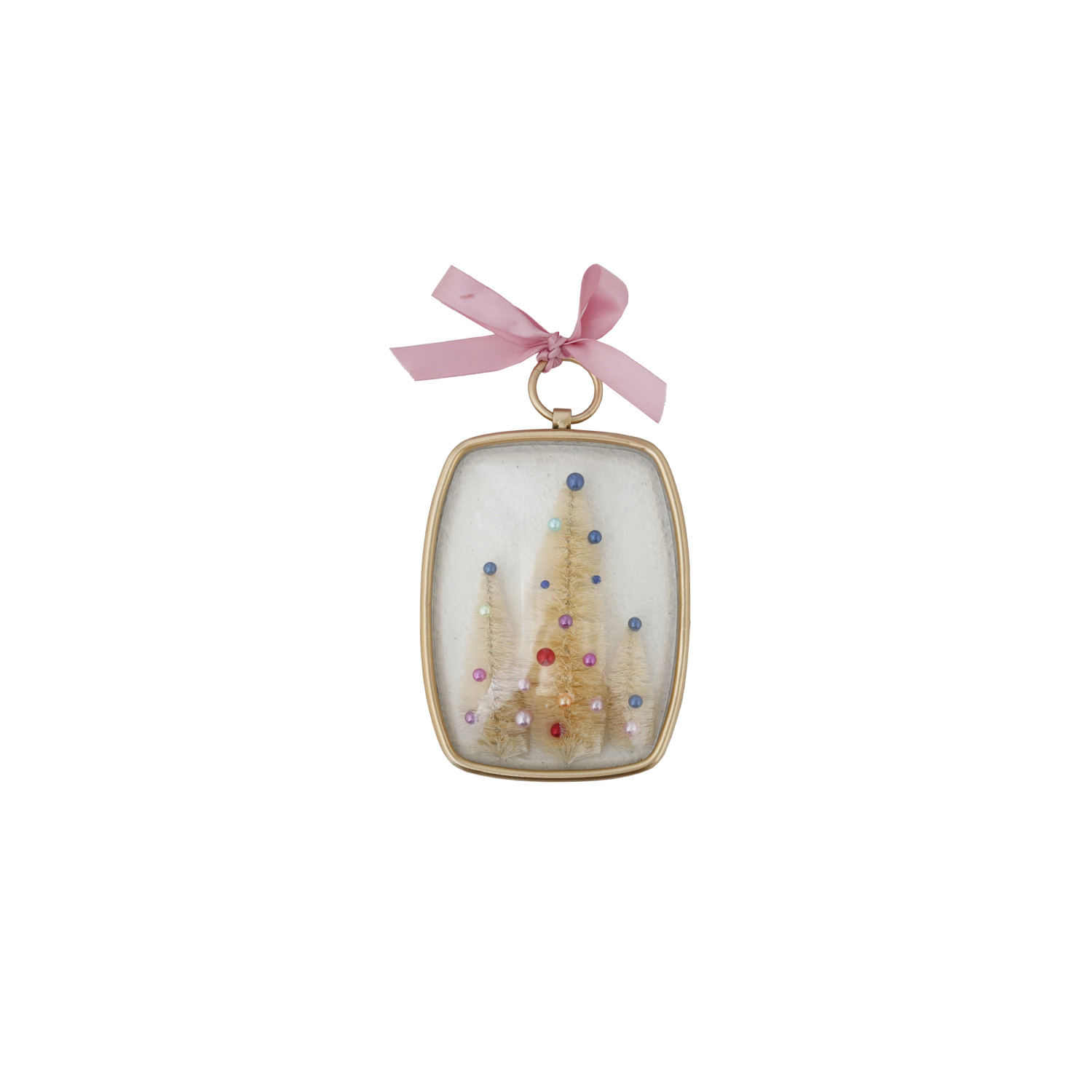 Convex Plastic & Metal Ornament with Bead Ornaments, Bottle Brush Trees & Bow