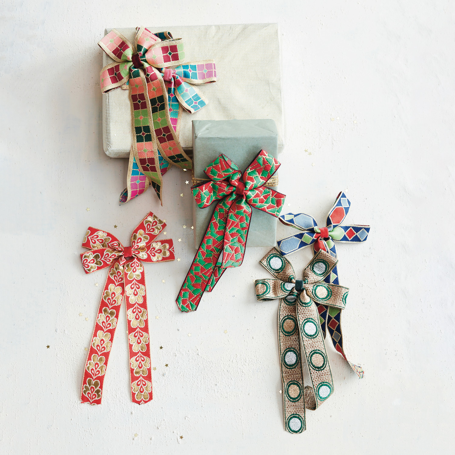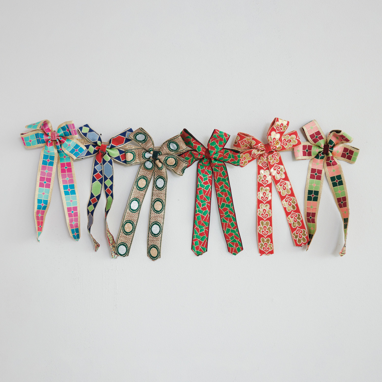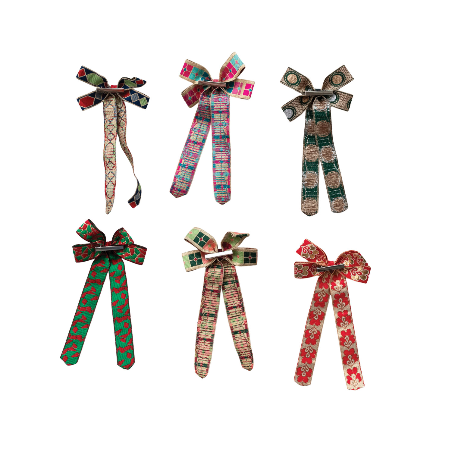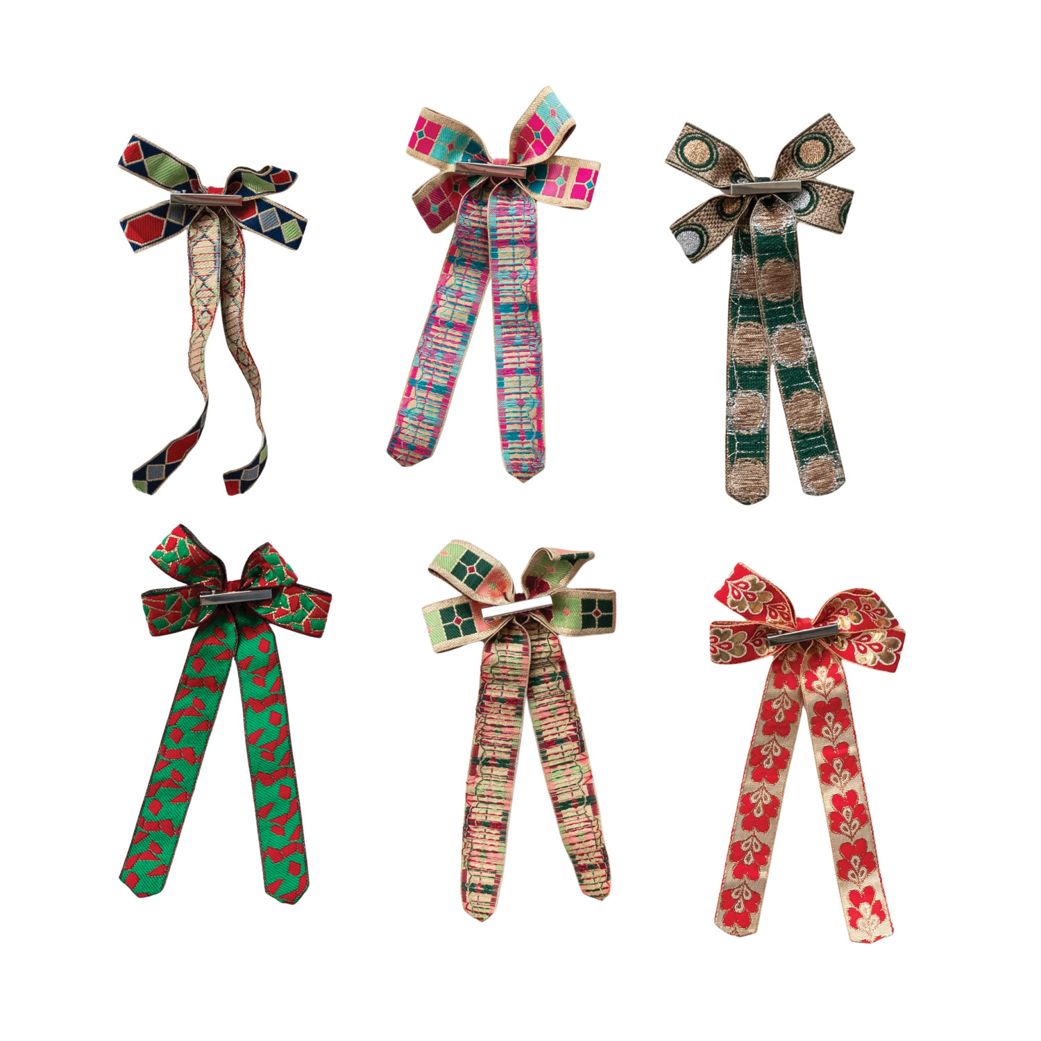 Catalog Name: 5"W x 10"H Fabric Jacquard Clip-on Bow w/ Pattern, Multi Color, 6 Styles