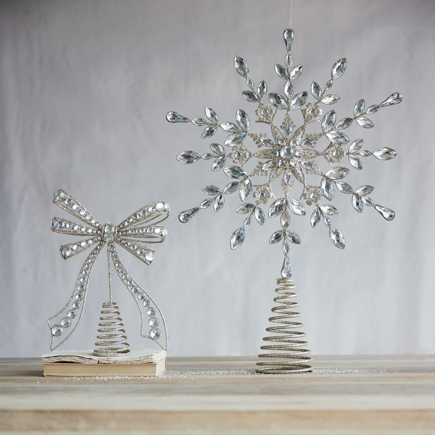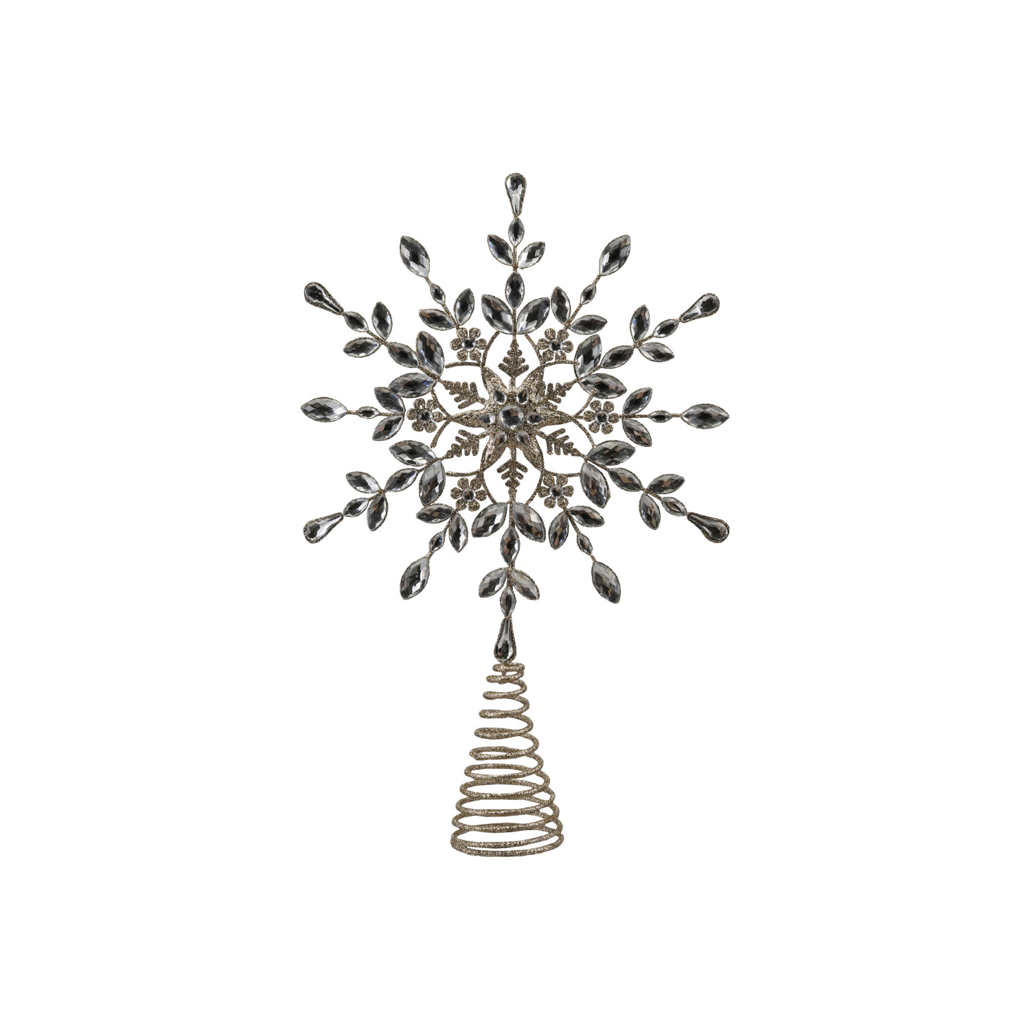 Catalog Name: 14-1/2"L x 3-3/4"W x 23"H Metal Snowflake Tree Topper w/ Acrylic Jewels & Glitter, Champagne Finish