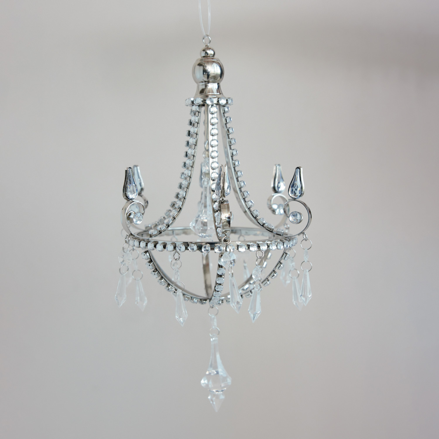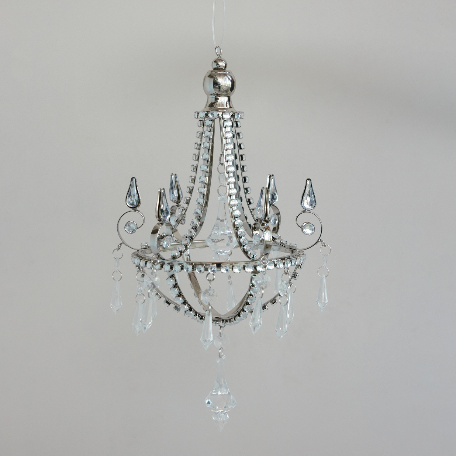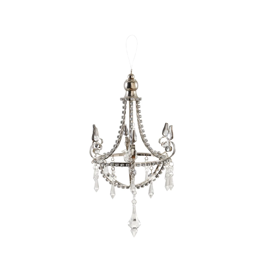 Metal Chandelier Ornament with Acrylic Jewels, Silver Finish