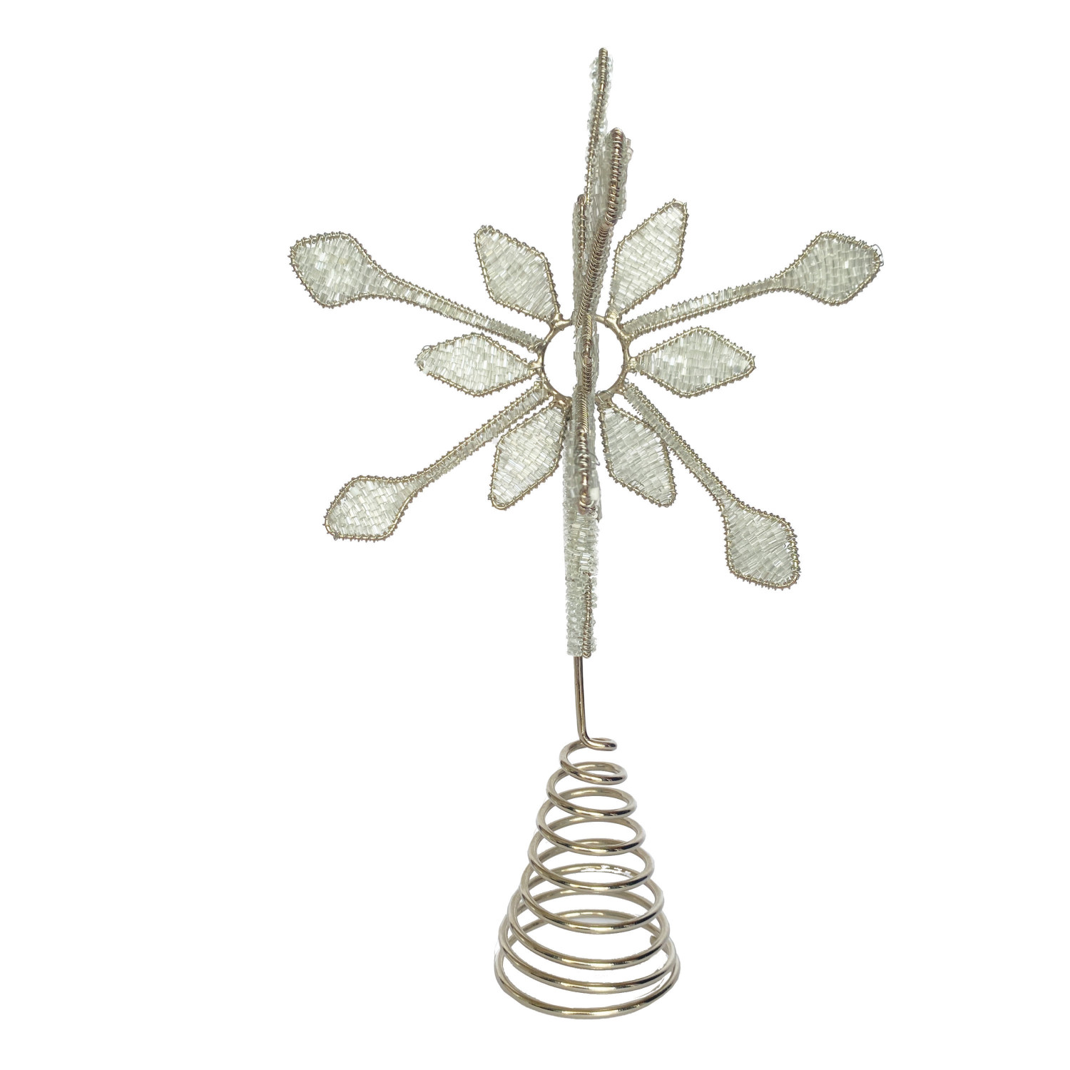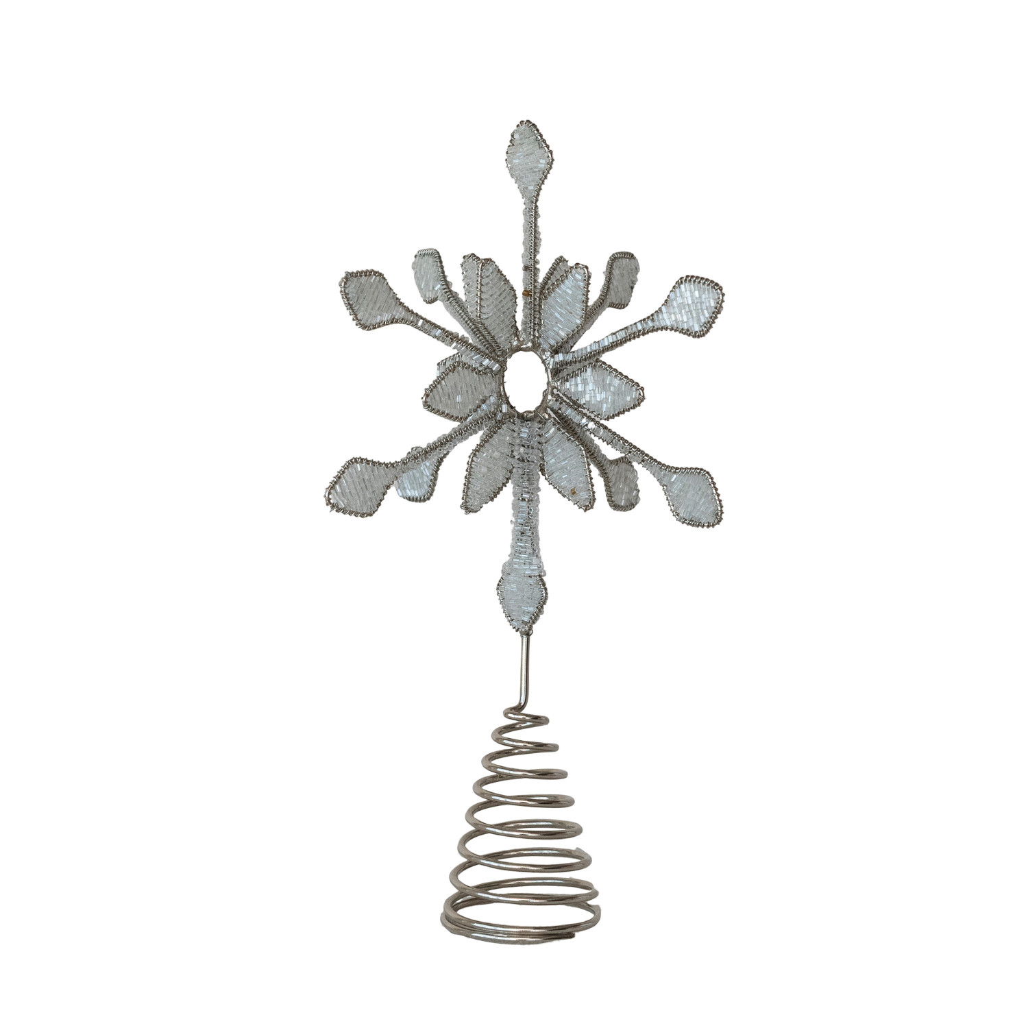Metal & Glass Beaded Snowflake Tree Topper, Silver Finish