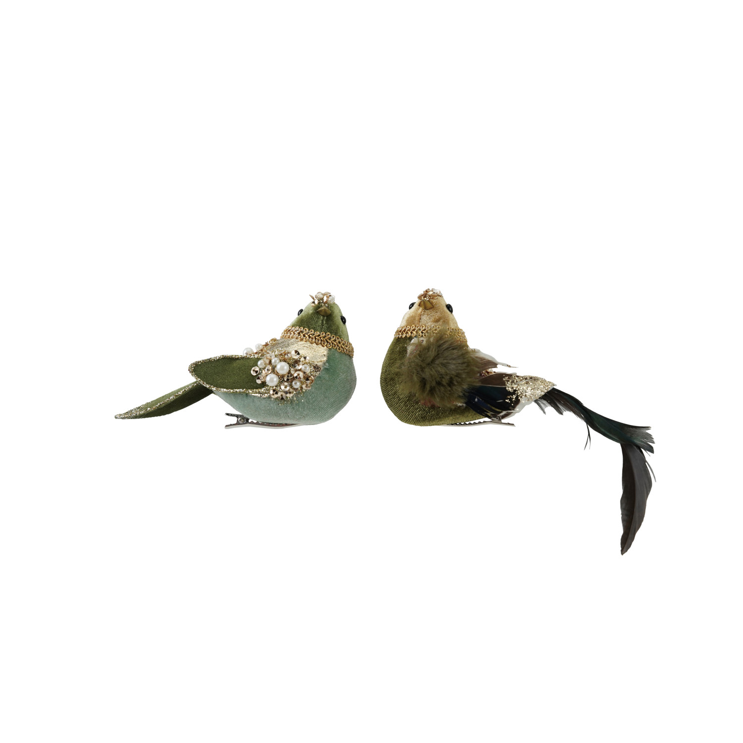 Catalog Name: 5"L Foam & Fabric Clip-on Bird Ornament w/ Feathers, Faux Pearls, Jewels & Glitter, 2 Styles