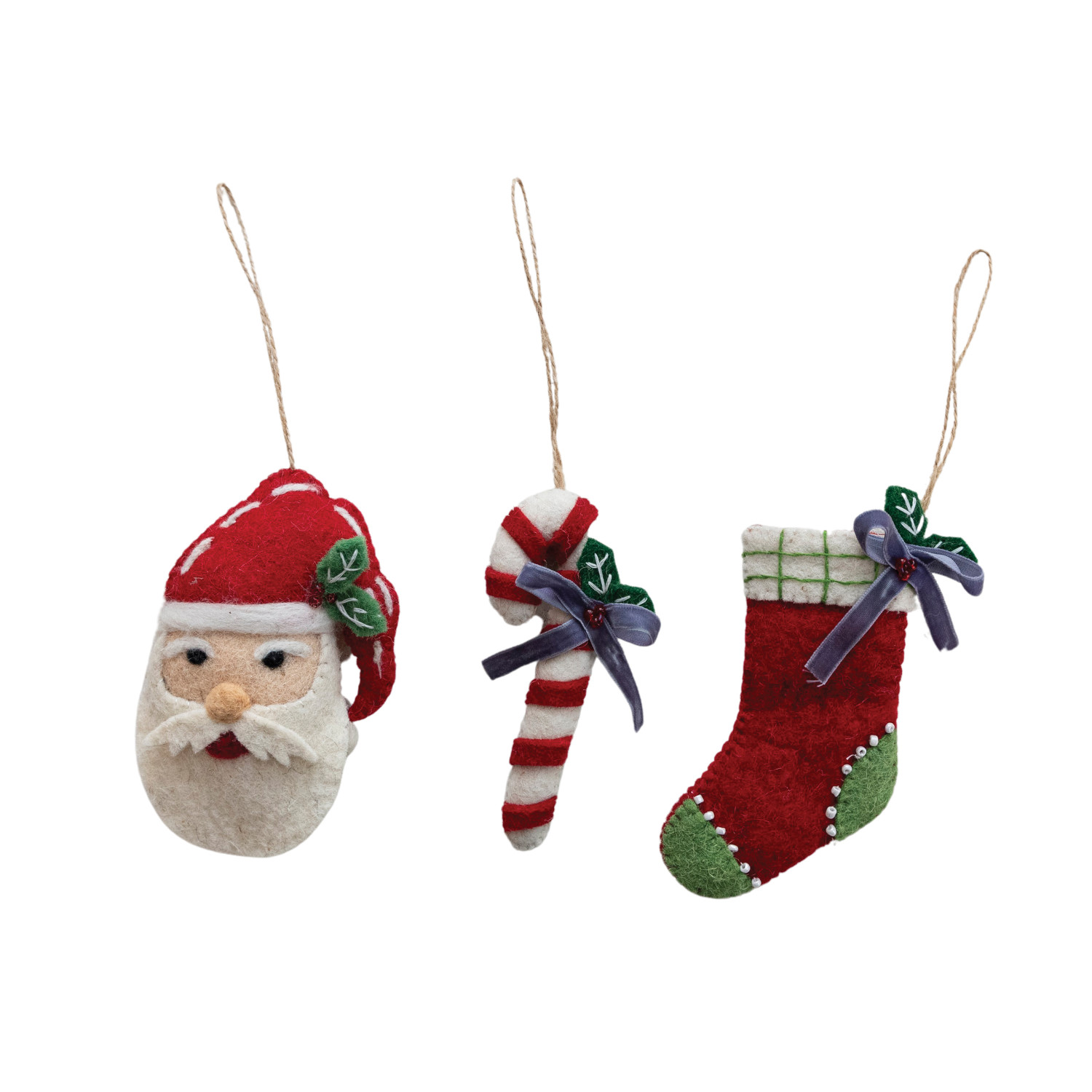 Catalog Name: 5"H Handmade Wool Felt Holiday Icon Ornament w/ Embroidery & Beads, Multi Color, 3 Styles ©