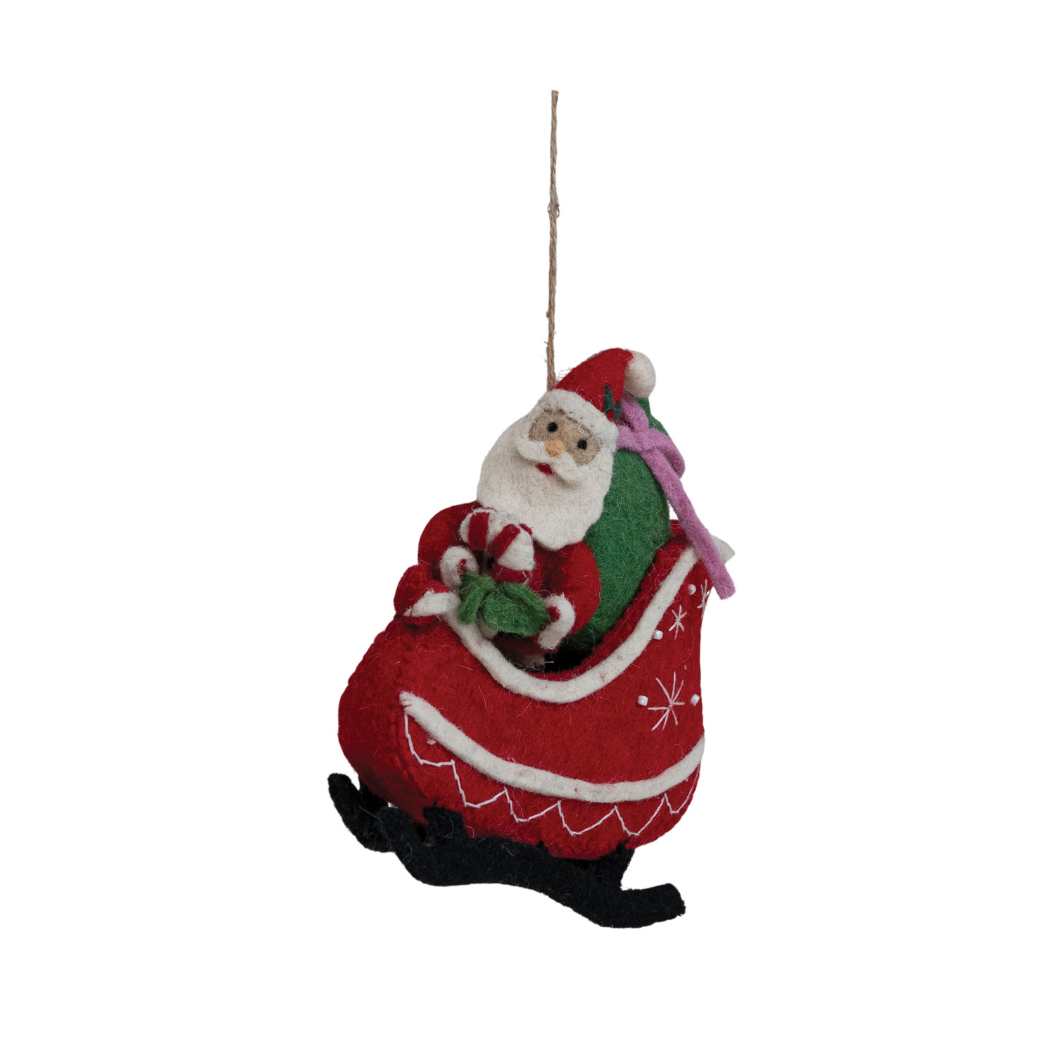 Catalog Name: 6"L x 6-1/2"H Wool Felt Santa in Sleigh Ornament w/ Embroidery & Beads, Multi Color ©