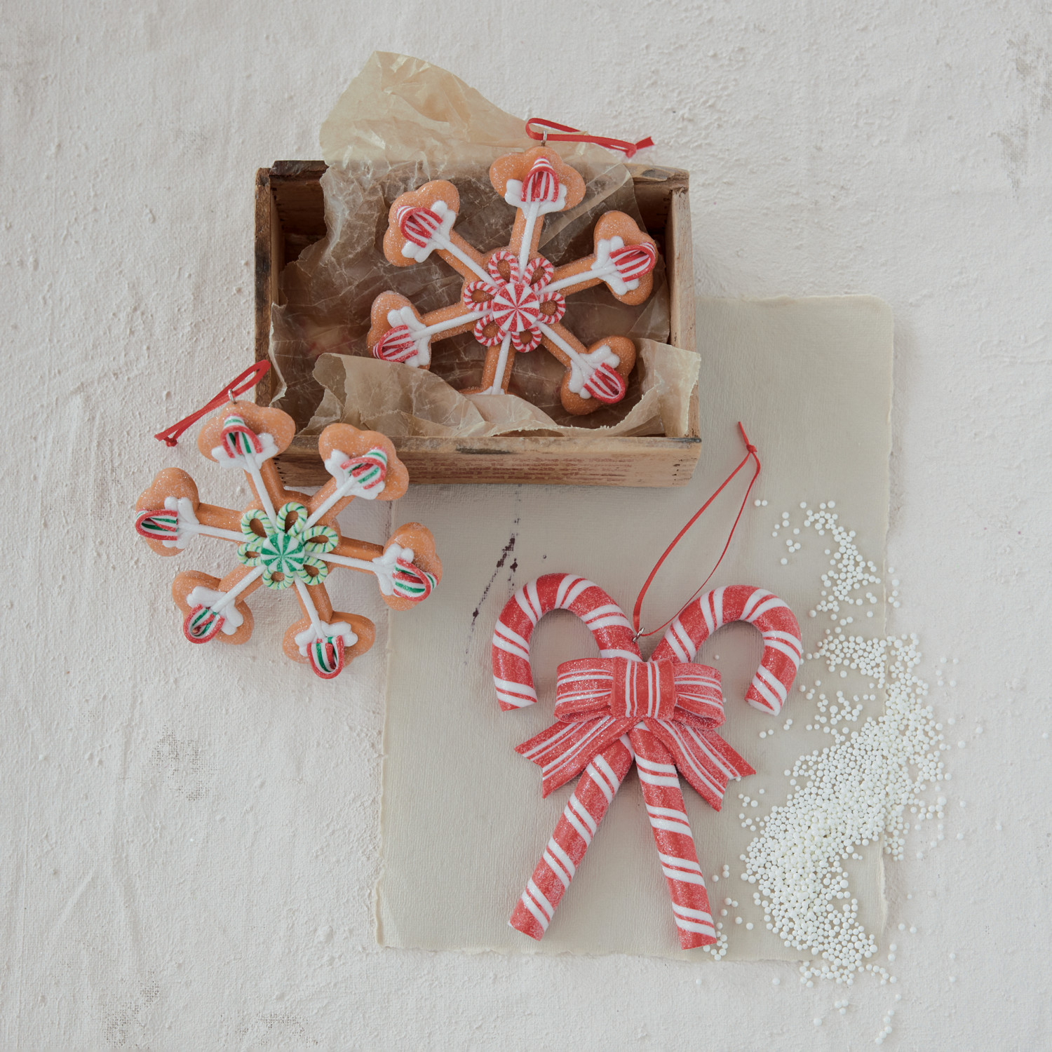 Clay Striped Candy Canes with Bow Ornament, Red & White