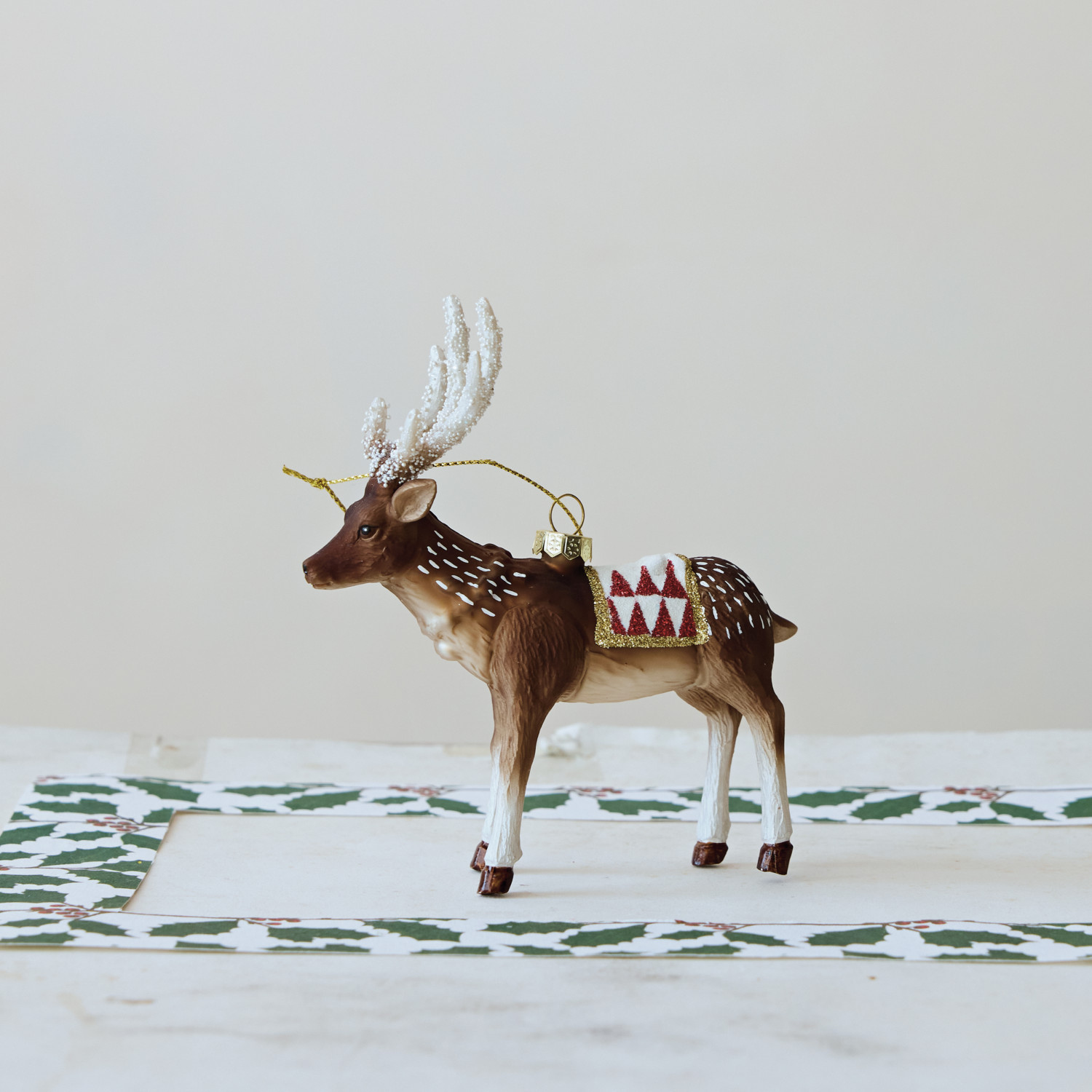 Hand-Painted Glass Deer Ornament with Glitter ©