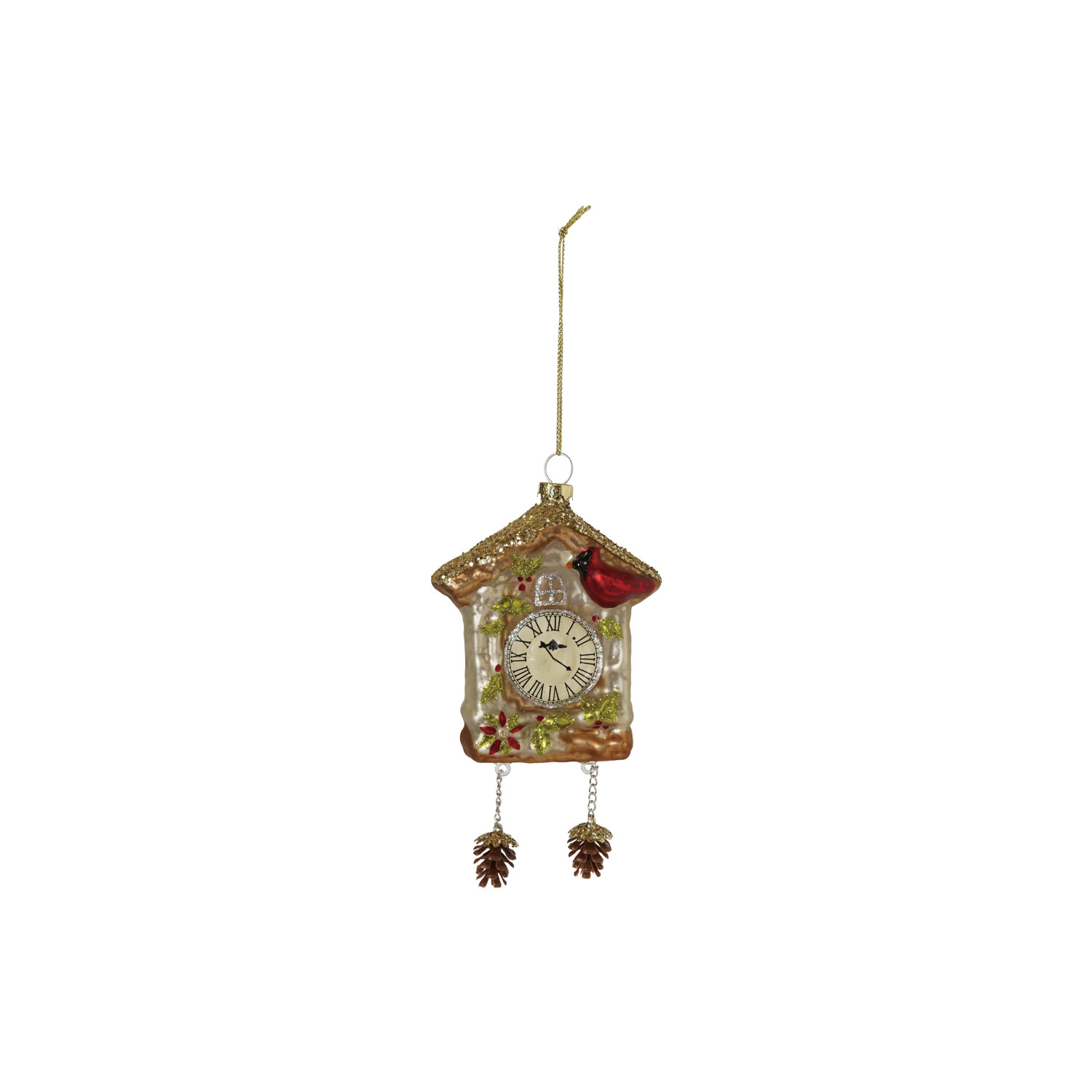 Catalog Name: 6"H Hand-Painted Mercury Glass Cuckoo Clock Ornament w/ Glitter, Multi Color