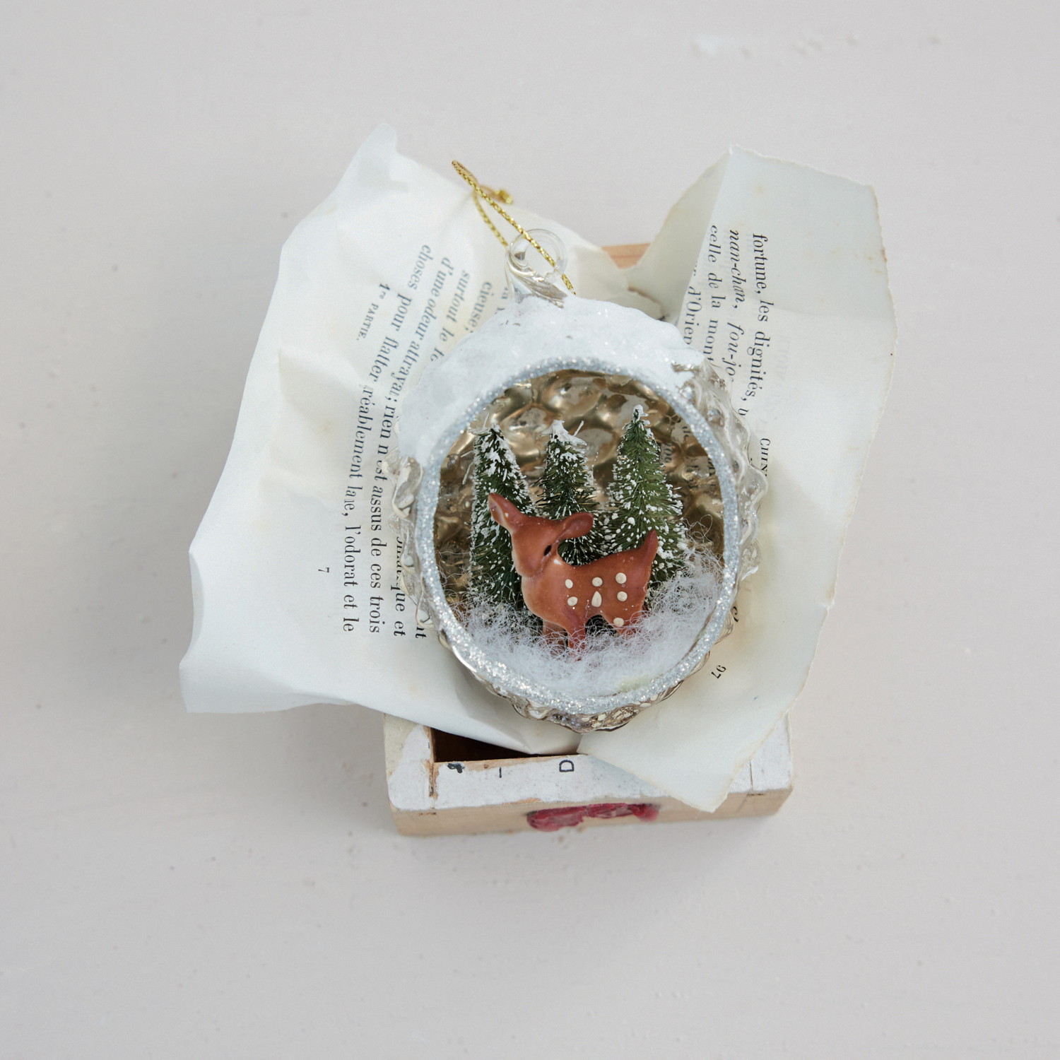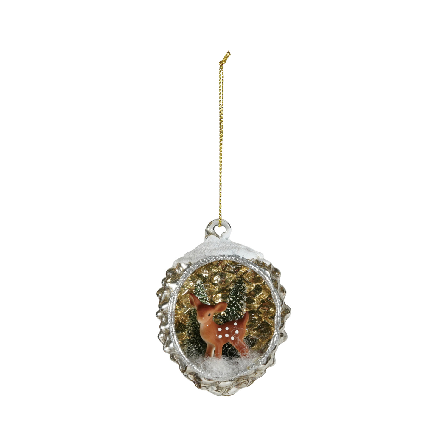 Mercury Glass Diorama Ornament with Deer & Glitter
