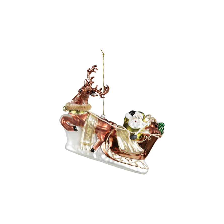 Hand-Painted Glass Santa's Sleigh & Reindeer Ornament with Glitter