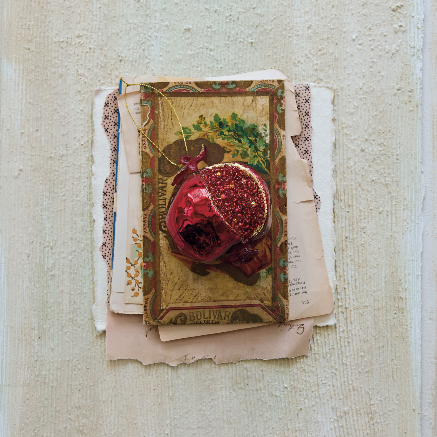 Hand-Painted Mercury Glass Pomegranate Ornament with Beads, Red & Gold Finish