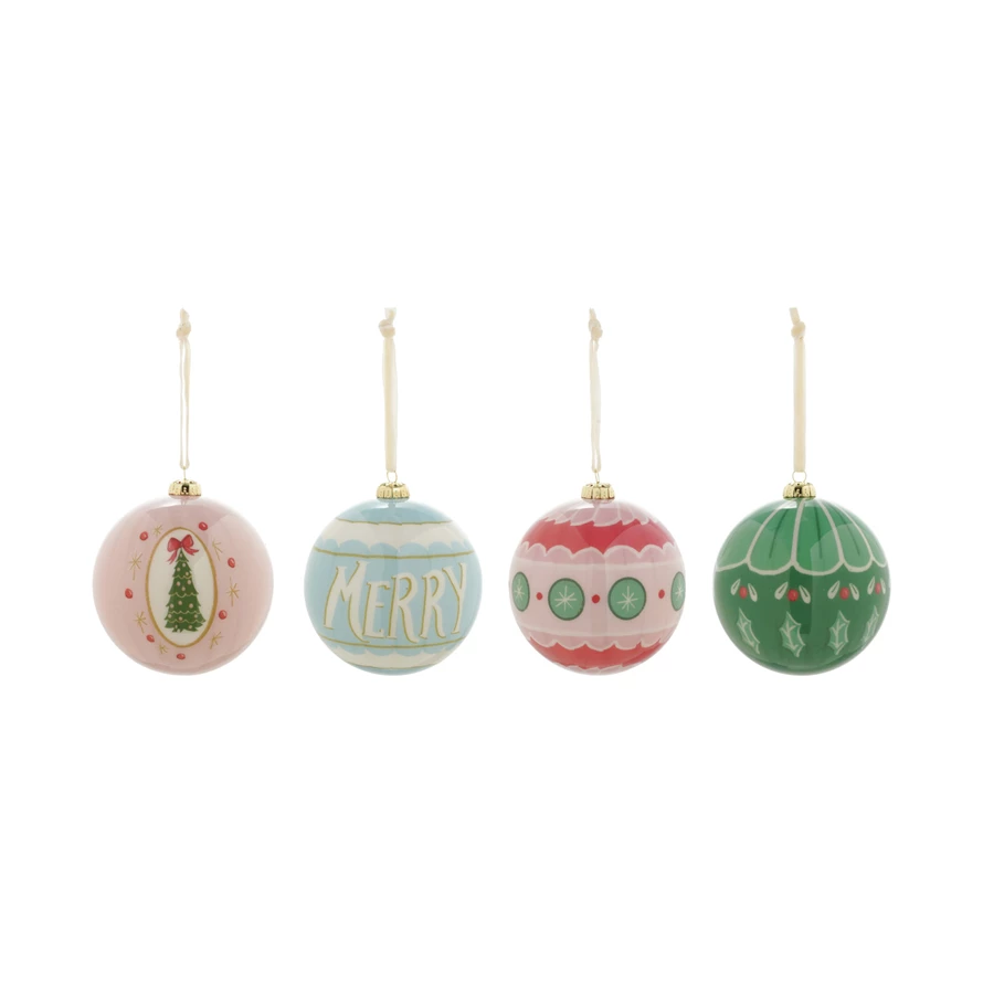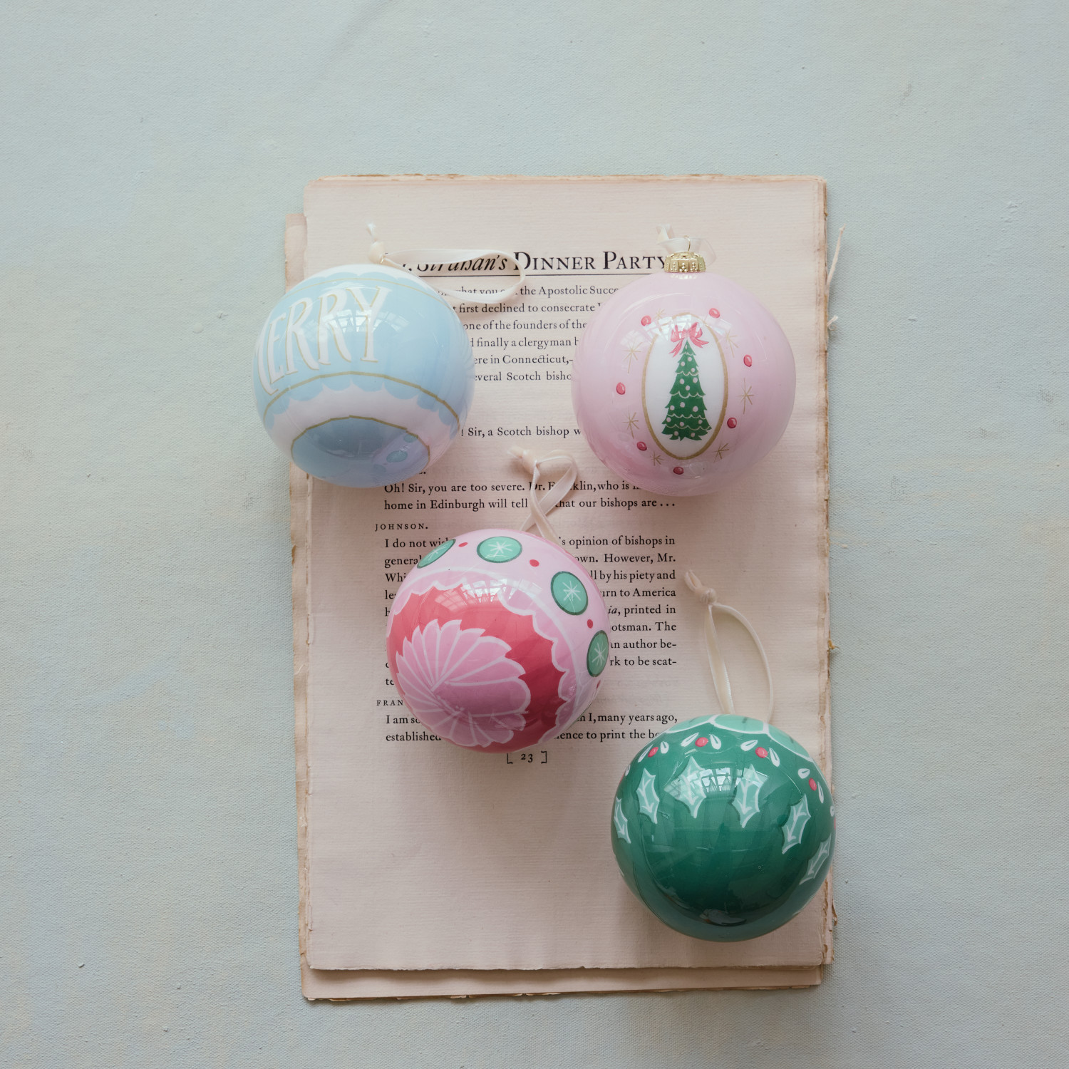 Catalog Name: 4" Round Decoupage Ball Ornament w/ Holiday Image/Word, Multi Color, 4 Styles ©