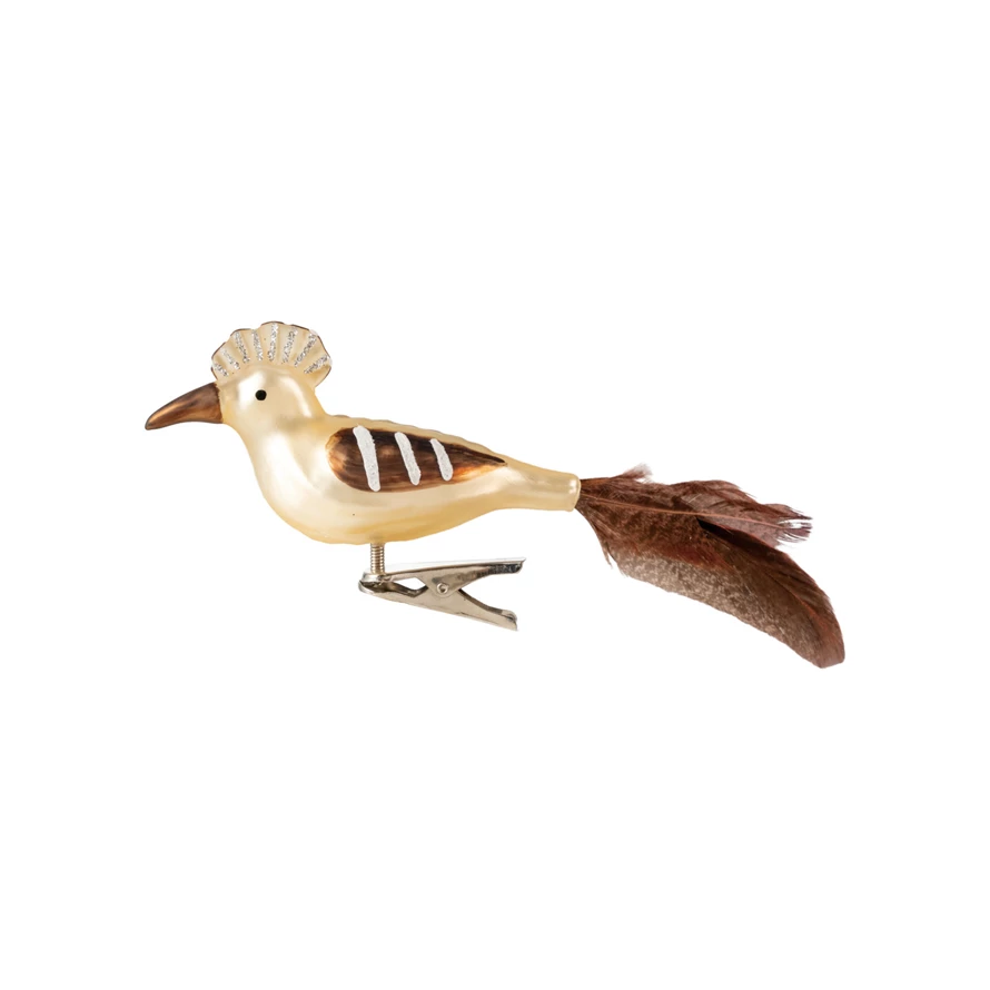 Hand-Painted Mercury Glass Clip-on Hoopoe Bird Ornament with Glitter & Faux Feather