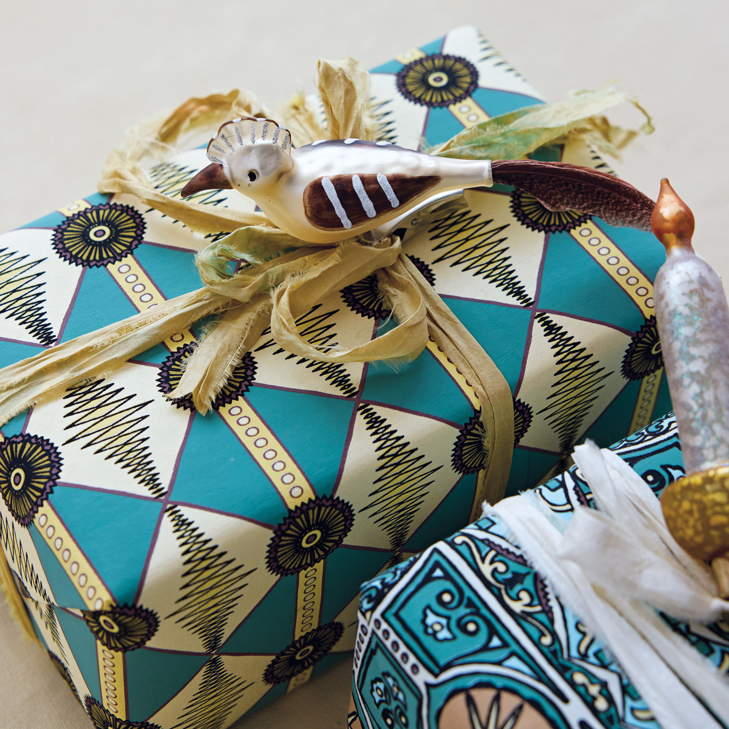 Hand-Painted Mercury Glass Clip-on Hoopoe Bird Ornament with Glitter & Faux Feather
