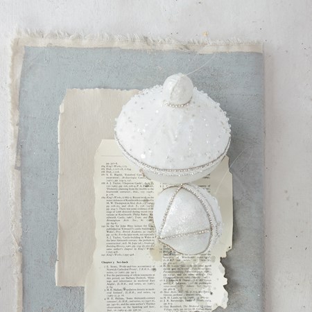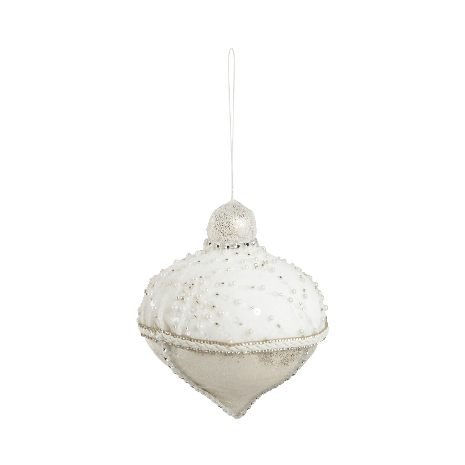 Catalog Name: 6-1/4"H Foam & Fabric Ornament w/ Jewels, Beads & Glitter, White
