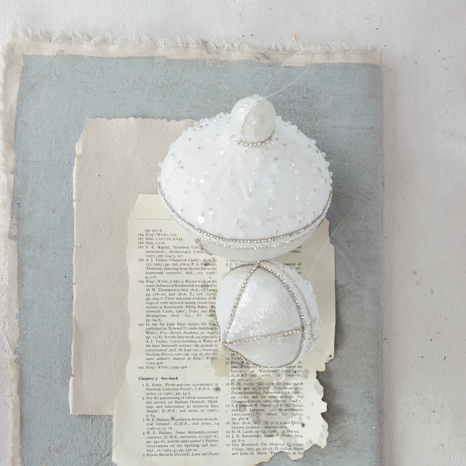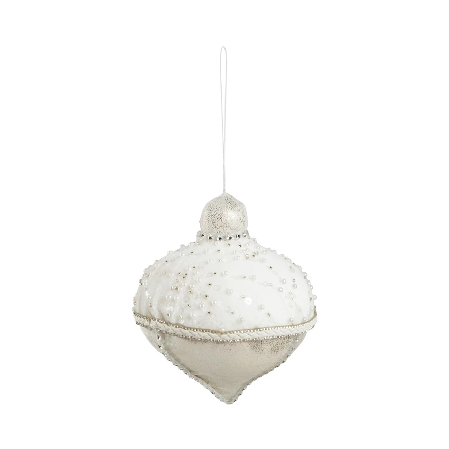 Foam & Fabric Ornament with Jewels, Beads & Glitter, White