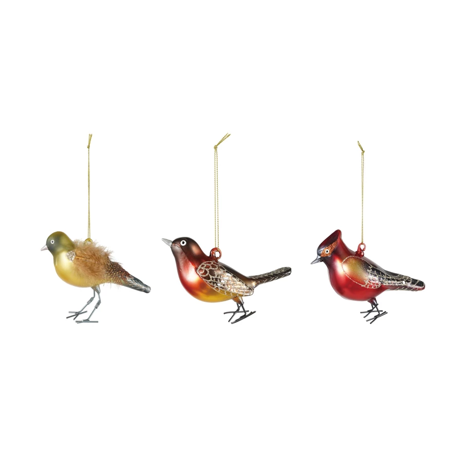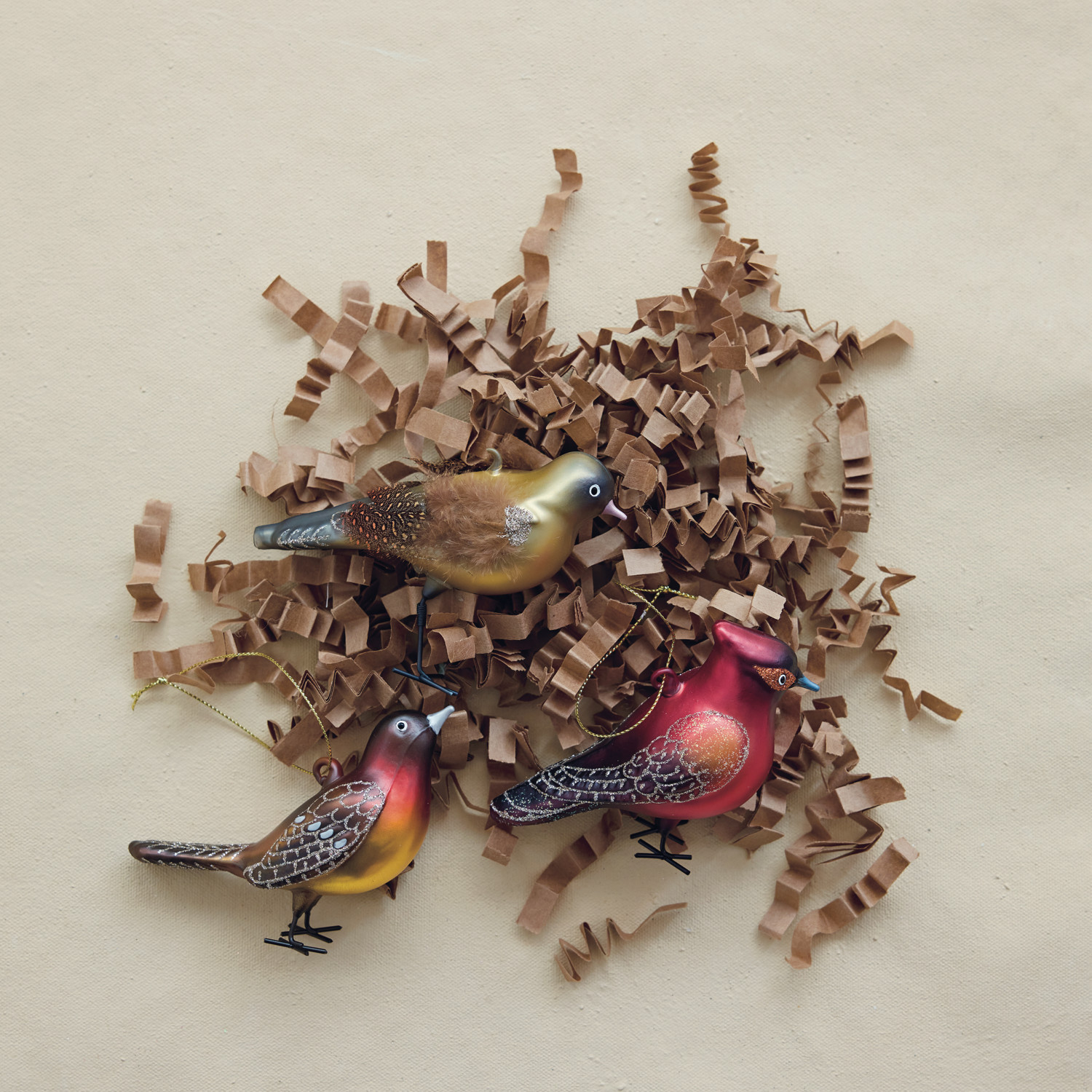Hand-Painted Glass Bird Ornament with Glitter, 3 Styles
