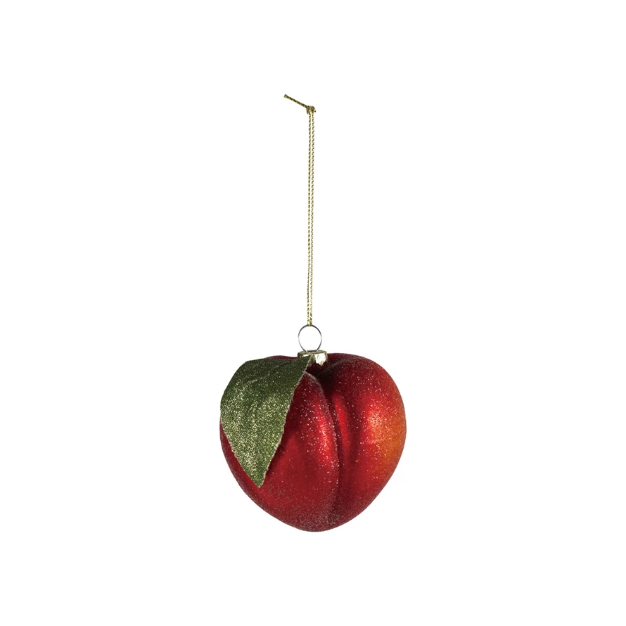 Hand-Painted Glass Peach Ornament with Glitter & Sugar