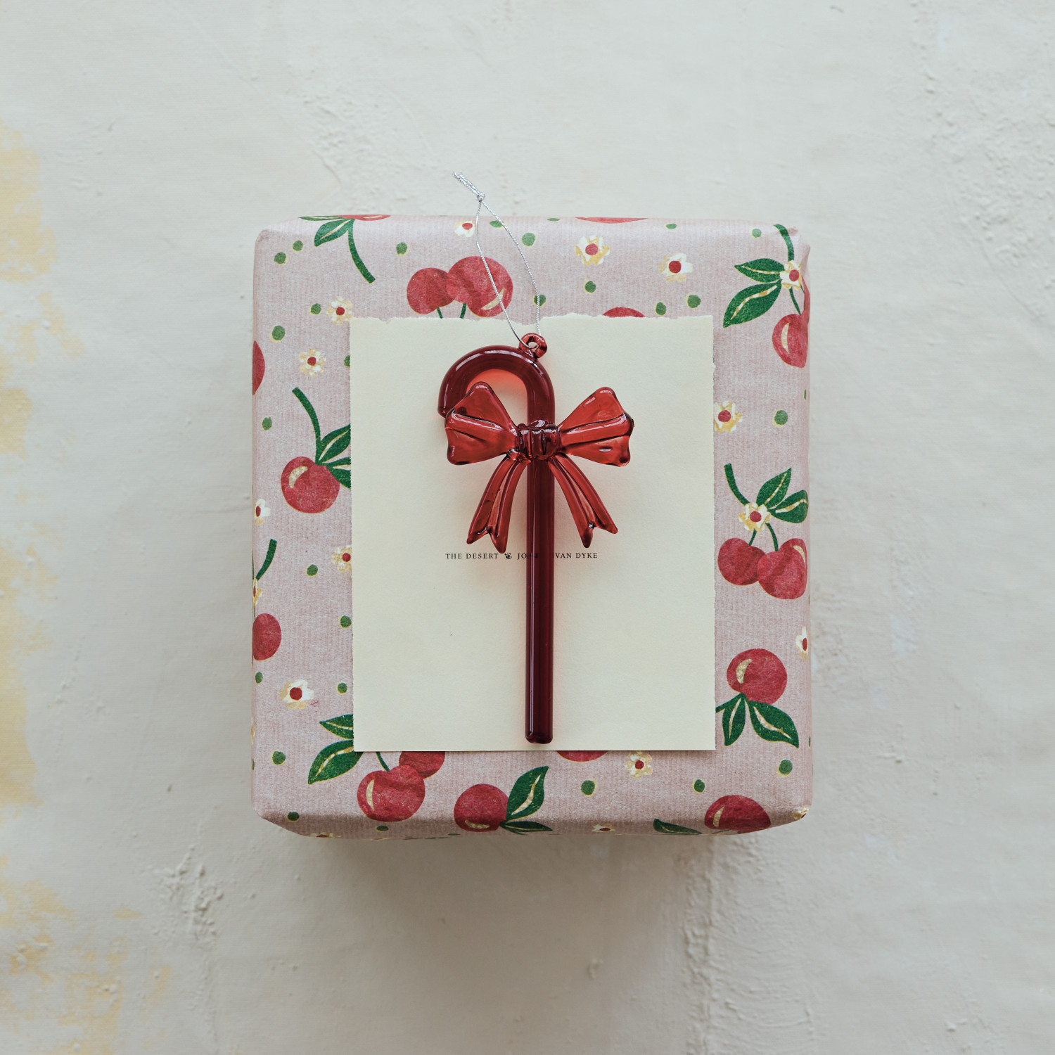 Catalog Name: 5-1/2"H Glass Candy Cane w/ Bow Ornament, Red