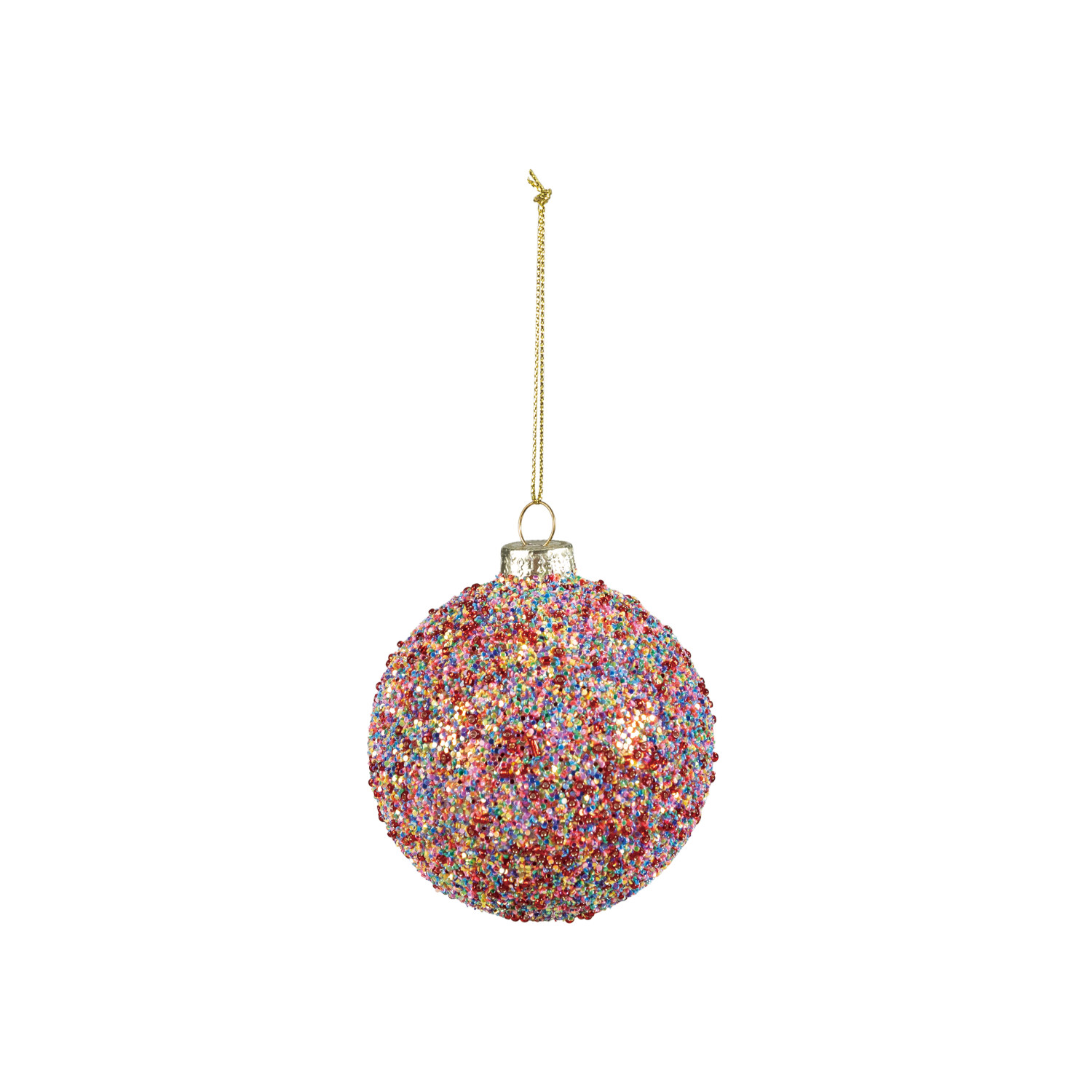 Catalog Name: 3" Round Glass Beaded Ball Ornament w/ Glitter, Multi Color